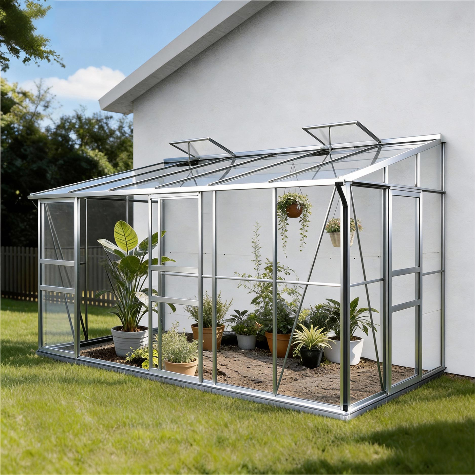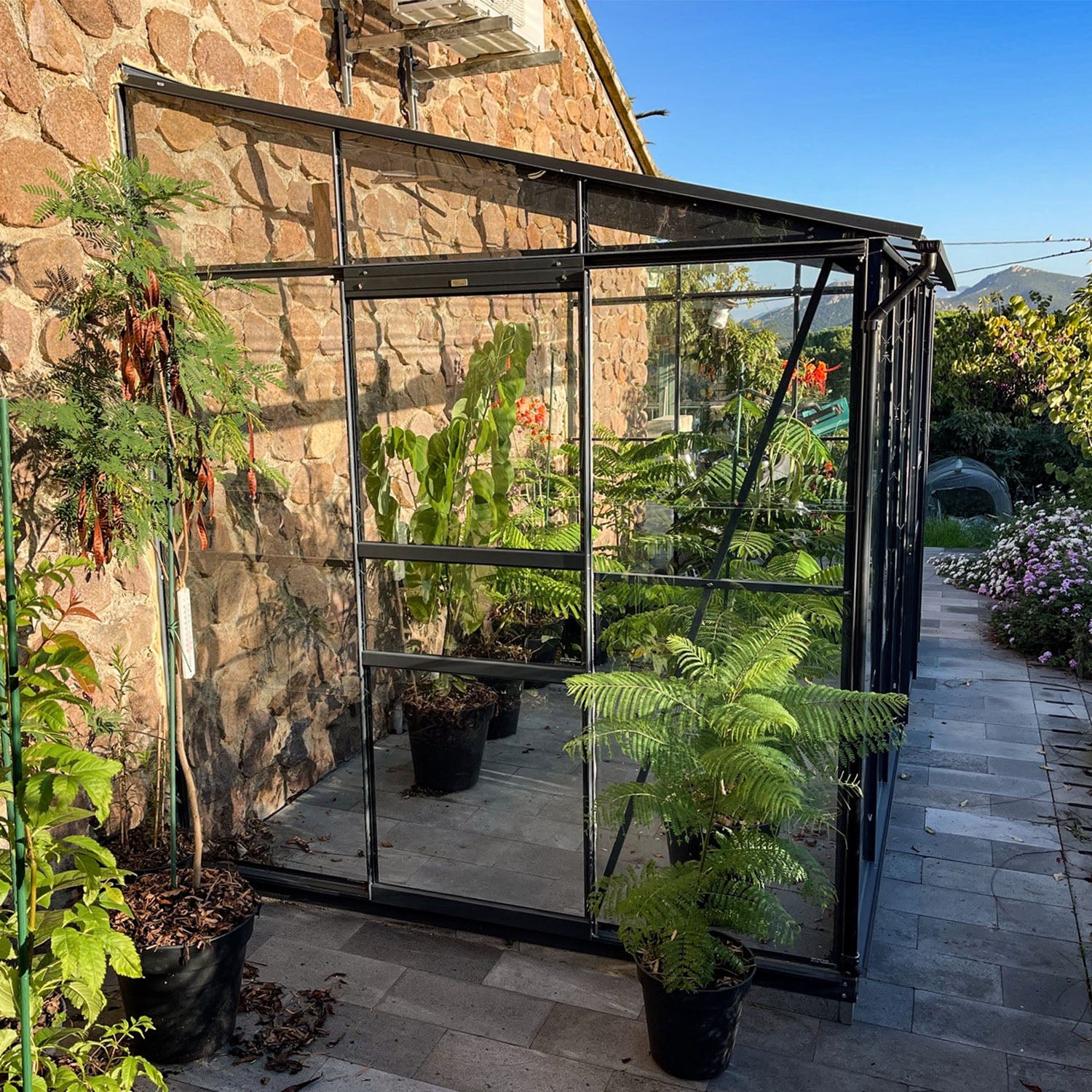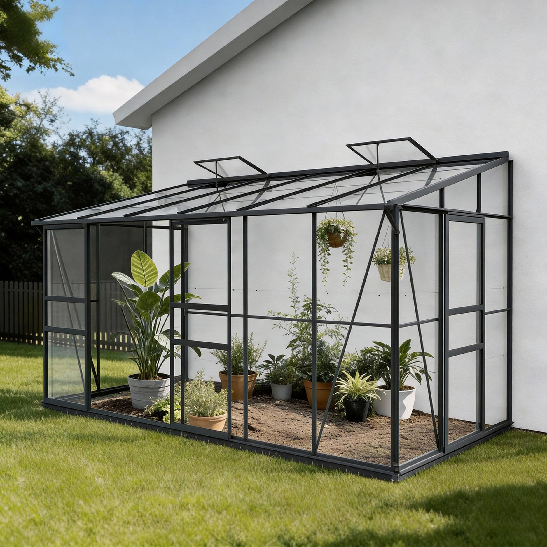 ⚠️Detta växthus mot vägg måste monteras i sin helhet mot en murad vägg (inte ett staket)