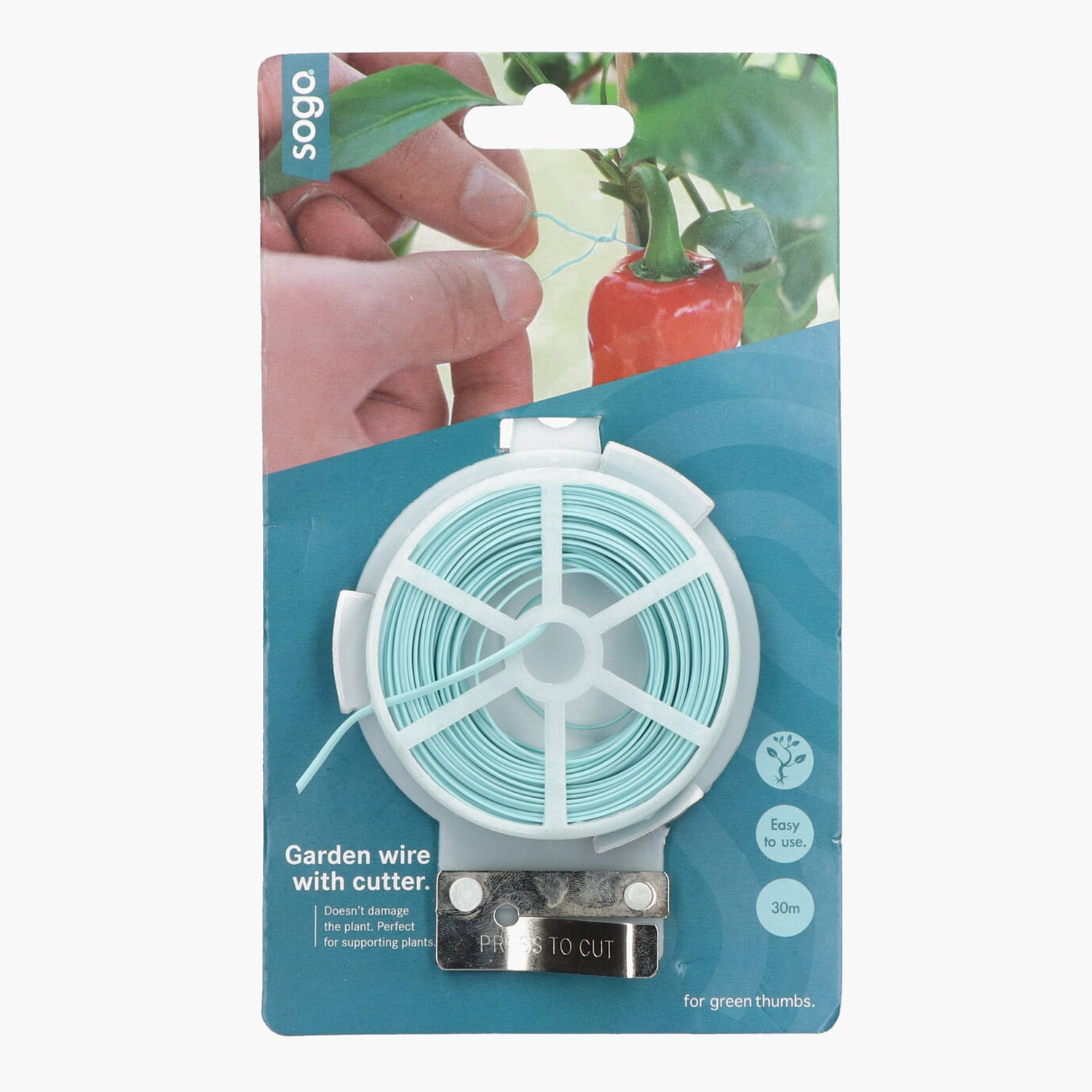 Denna SOGO bindtråd med kniv är en plastbindtråd, levererad på en rulle om 30 meter, med en praktisk inbyggd skärkniv. Den är utformad för att binda upp klätterväxter, tomatstöd eller andra trädgårdsväxter där du vill ge stöd eller leda plantan. Materialet är flexibelt, men tillräckligt starkt för daglig användning i trädgården.