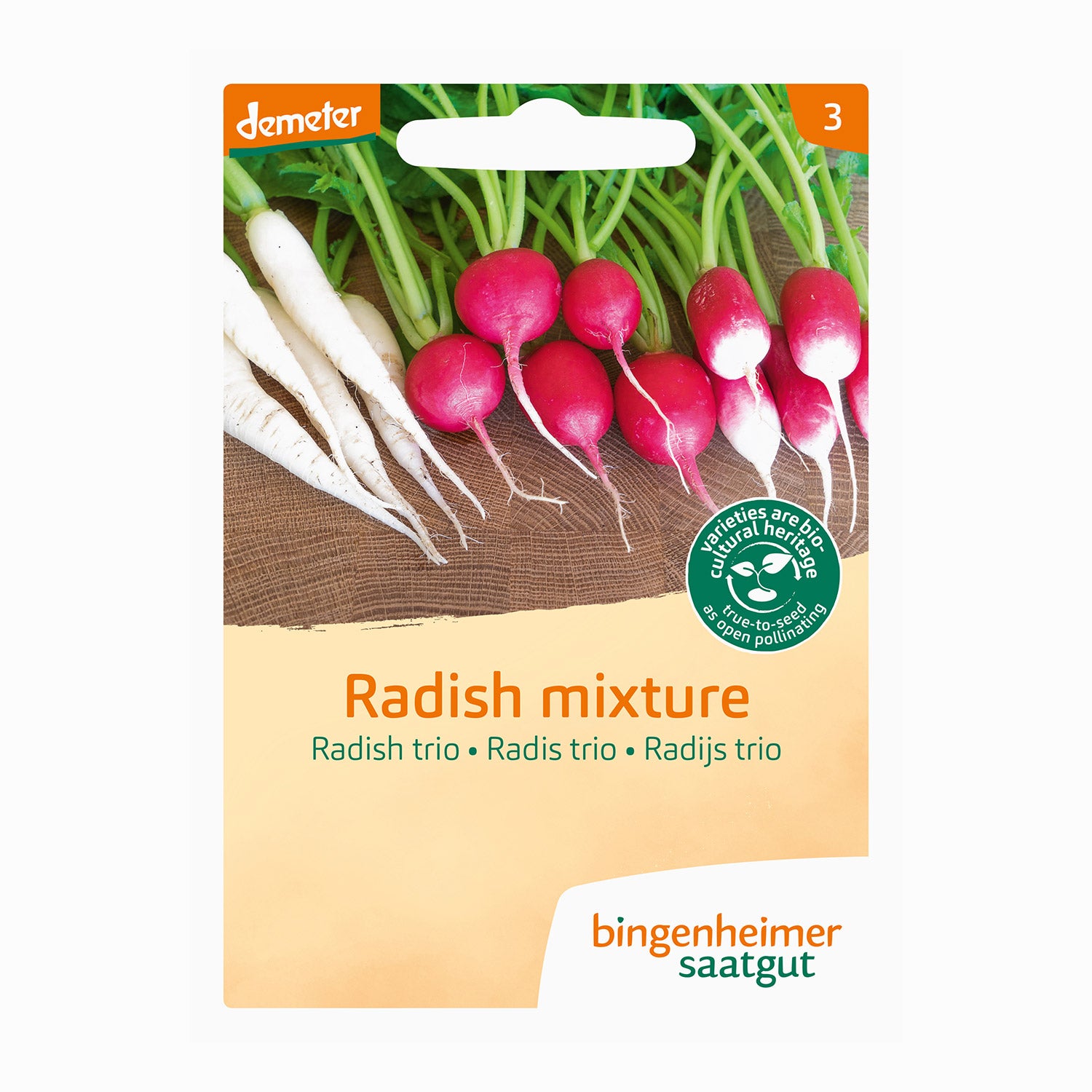 Dyk ned i den fascinerande världen av Trio Radis-mix, en samling färger och smaker som kommer att förtrolla dina sinnen. Denna mix består av French Breakfast (röd/vit), Rubi (röd) och Eiszapfen (helt vit). Dessa rädisor är inte bara visuellt tilltalande, utan är också kända för sin snabba tillväxt, vilket gör dem till ett idealiskt val för trädgårdsodlare på alla nivåer.