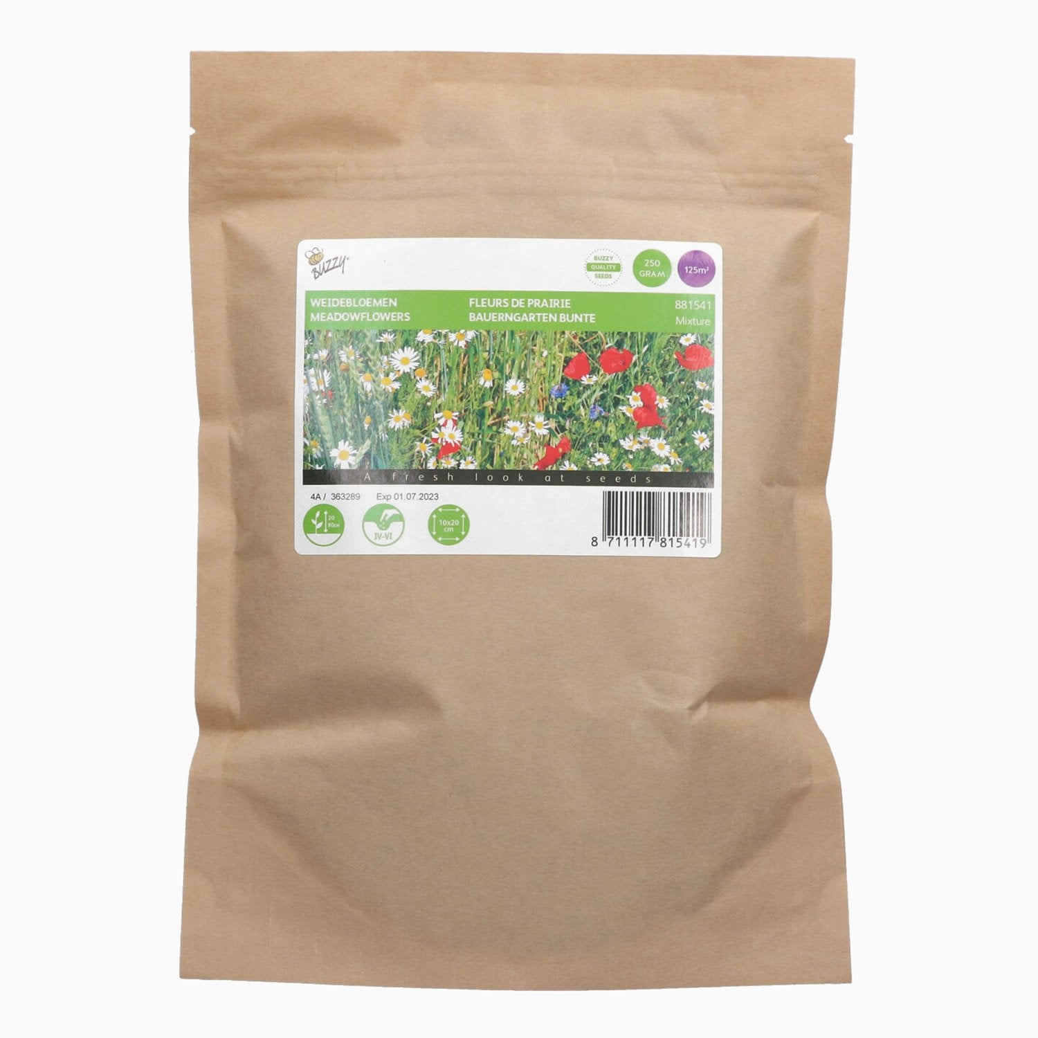 Upptäck den förtrollande ängsblomsterblandningen, en vacker samling blommor som tar med sig charmen från ängsmarker till din trädgård. Denna unika mix kombinerar färgprakt och mångfald av inhemska ängsblommor, vilket ger din trädgård en touch av vild skönhet.