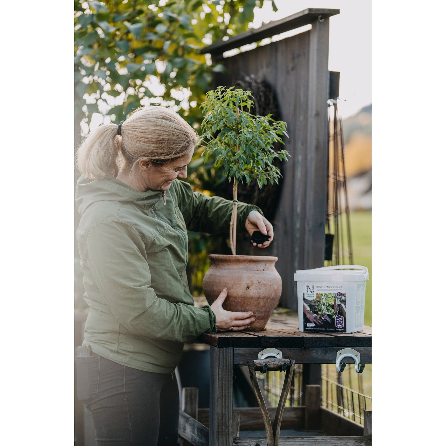 Biohumus Terra kan användas på flera sätt. Du kan till exempel tillsätta ett lager på 2 cm till dina krukväxter. Blanda sedan in det. Om du ska plantera om en växt kan du blanda den nya krukjorden med 20 % Biohumus, så att växten får näring direkt. Slutligen kan du blanda 1 del Biohumus med 5 delar vatten i din vattenkanna, och sedan bara vattna växterna med det. Större planer? Använd 1 hink per kvadratmeter köksträdgård för att förbättra jorden.