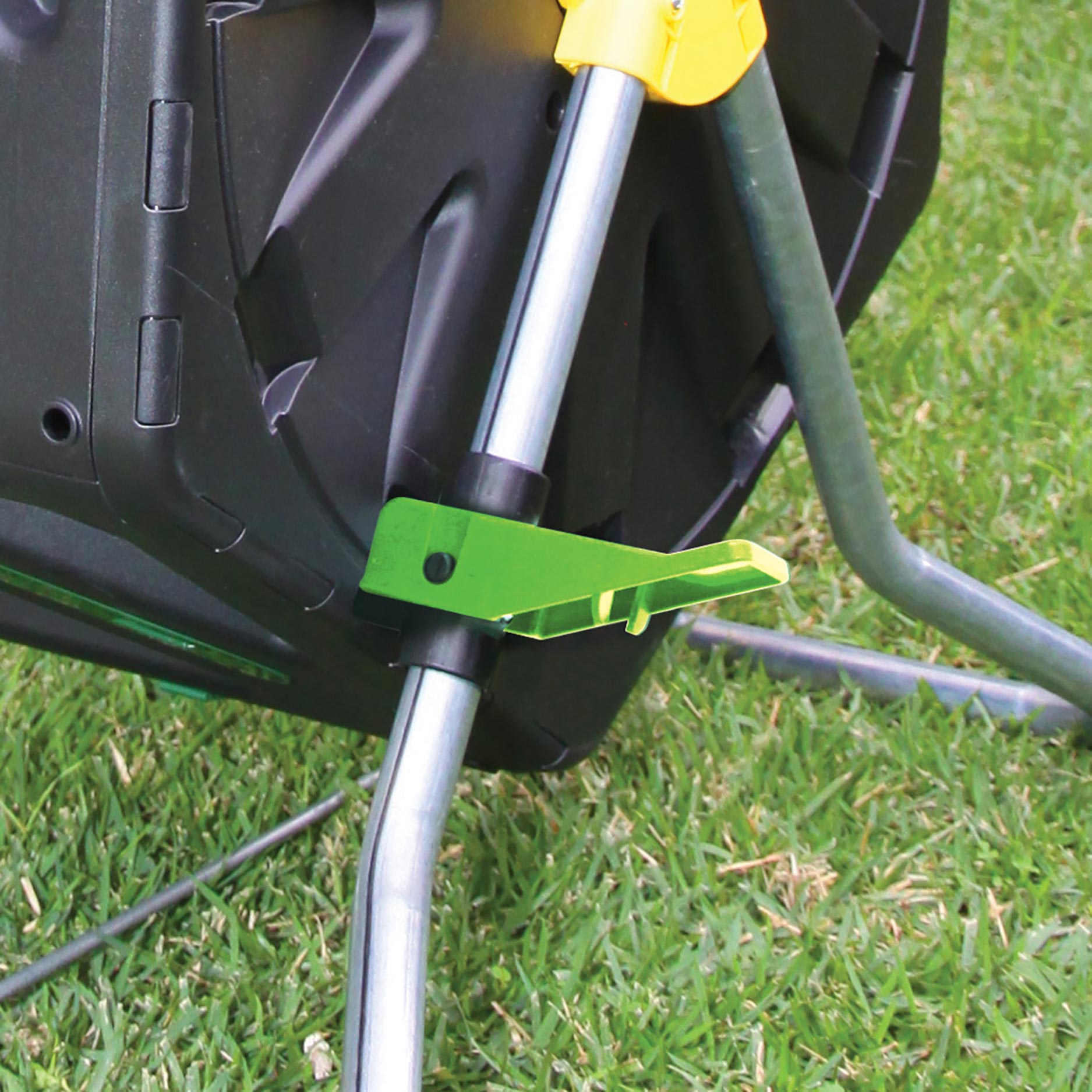 För att använda kompostbehållaren fyller du den växelvis med “brunt” material (som torra löv, småkvistar, papper) och “grönt” material (som köksrester, gräs, grönsaker) för att skapa en bra balans. Stäng locket och rotera trumman regelbundet, så att syre tillförs och komposteringen går snabbare. Efter cirka 6 till 8 veckor kan du skörda färdig kompost, beroende på förhållandena (fuktighet, temperatur och rätt materialförhållande).