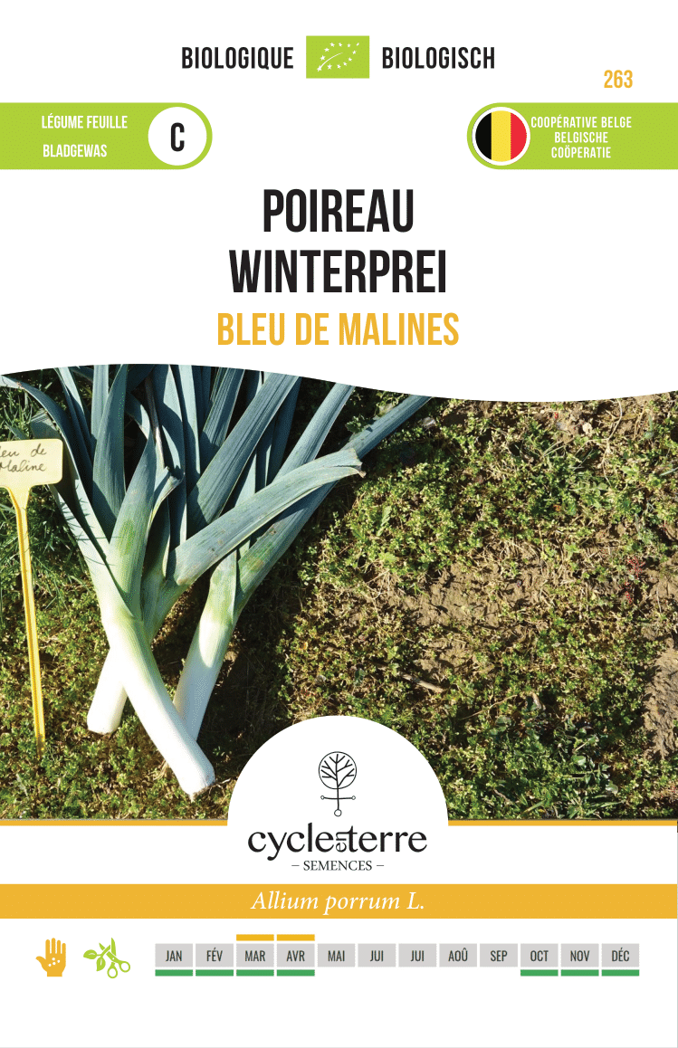 Plantorna sås vanligtvis i mars eller april och kan därefter planteras ut i början av sommaren. Under tillväxten är det bra att kupa stjälken lätt så att den förblir fint vit och mjuk. Bleu de Malines är utvald för att tåla kraftig kyla, vilket gör att den kan skördas från senhösten och långt in på vintern. En purjolök är skördeklar när stjälken har utvecklat en fin diameter och känns fast. Dra helst upp den en torr dag, så att purjolöken förblir ren och får lång hållbarhet.
