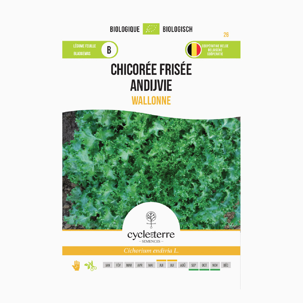 Krussallat från Vallonien är en autentisk höstgrönsak som uppskattas för sin tålighet mot fuktiga förhållanden och den första frosten. Denna sort ger välfyllda huvuden med dekorativa, krusiga blad. Tack vare sin fasta struktur och lätt bittra smak är denna endive en klassiker i höstköket.