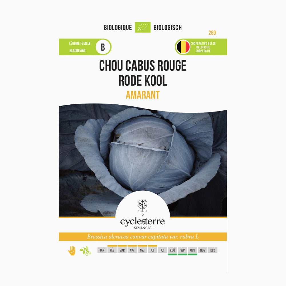 Odlingen av röd amarantkål börjar med sådd i en såbädd, på ett djup av 1 till 2 cm. Detta kan göras från februari till mitten av juni. När plantorna har utvecklat 6 till 8 riktiga blad kan de planteras ut med ett avstånd på 50 x 60 cm. Plantan trivs bra utomhus, men kan också odlas i ett växthus för att optimera odlingsförhållandena. Se till att jorden är näringsrik och väldränerad samt att du vattnar tillräckligt. Skördetiden löper från början av augusti till oktober, beroende på sådatum.