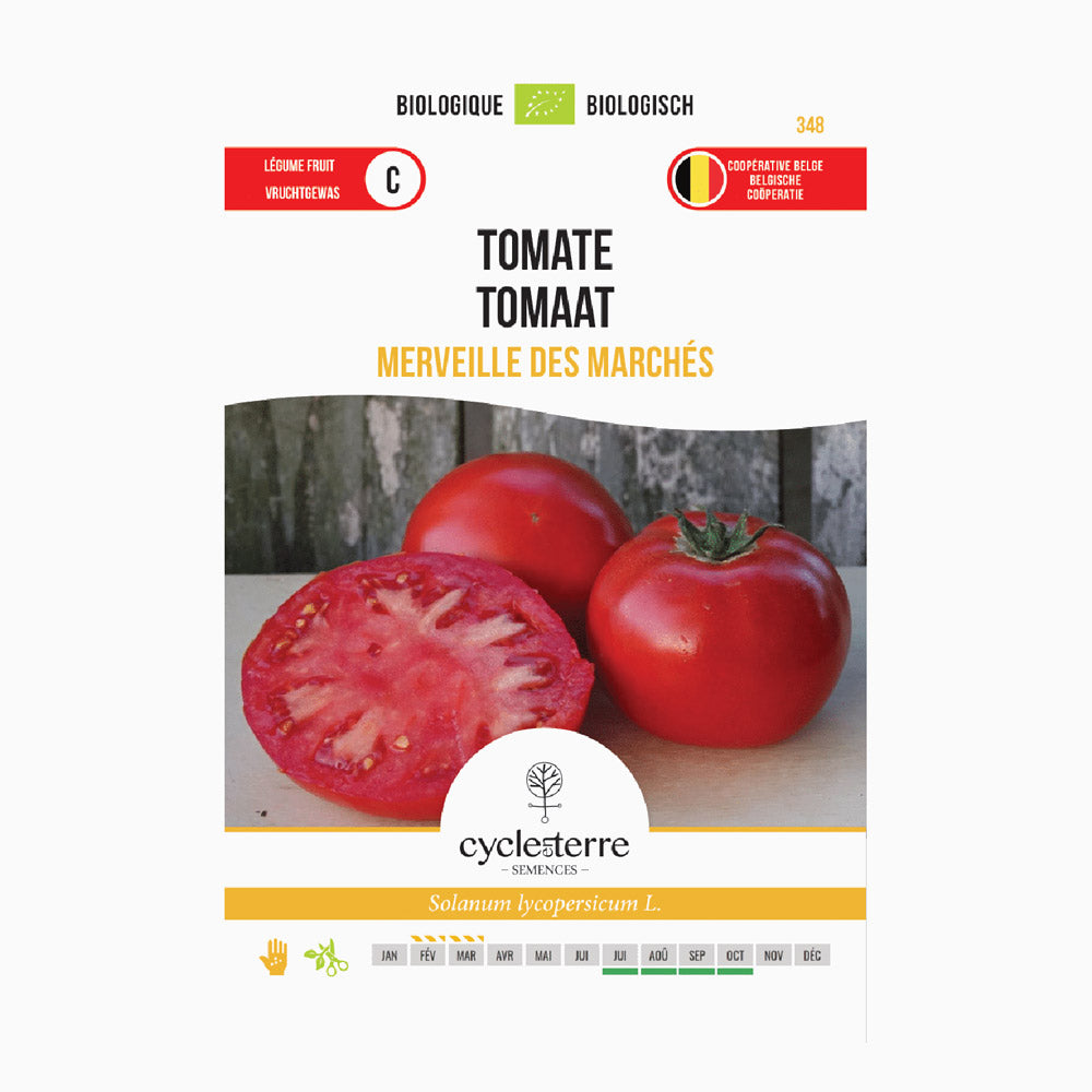 För optimal tillväxt sår du ’Merveille des Marchés’ från februari till mars på en varm plats (18 till 24°C). När de unga plantorna har några riktiga blad planterar du om dem i krukor med en diameter på 8 cm. Från och med den 15 maj kan plantorna planteras ut i ett växthus eller under ett tak, med ett plantavstånd på 50 x 80 cm. Den här tomaten trivs både på friland och i växthus, och skördesäsongen sträcker sig från mitten av juli till oktober, när tomaterna är helt mogna och har utvecklat sin fulla smak.