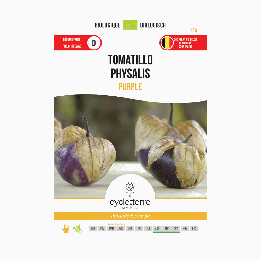 Tomatillo Paars, en variant av Physalis. Frukten liknar en lila tomat med en diameter på cirka 4 cm, men har en överraskande annorlunda smak och konsistens. Frukten omges av ett papperstunt skal, som skyddar frukten och gör skörden enklare. Plantan är särskilt lättodlad, med riklig skörd och minimal mottaglighet för sjukdomar.