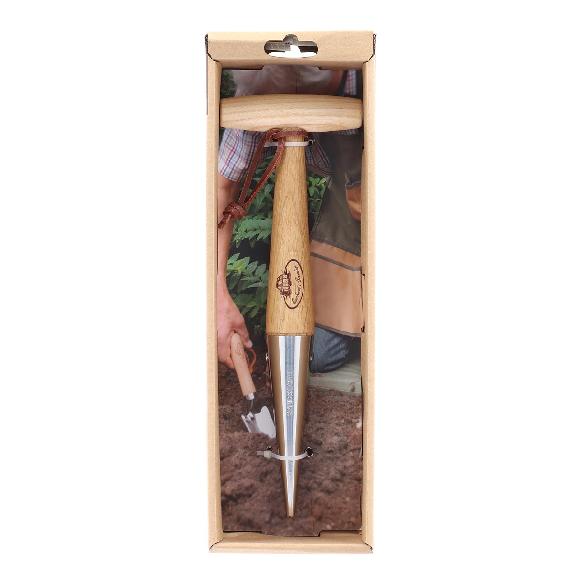Planteringsstickan i rostfritt stål är ett traditionellt trädgårdsredskap för alla med gröna fingrar och idealisk för noggrann plantering av lökar och plantor. Med detta redskap gör du enkelt prydliga planteringshål i jorden, så att du kan arbeta snabbt och kontrollerat. Planteringsstickan är tillverkad av rostfritt stål med askträ och är avslutad med nötläder i form av en läderupphängningsögla. Det ergonomiska T-handtaget ger ett bekvämt grepp och extra kontroll. Allt levereras i en öppen presentförpackning, vilket gör den trevlig att ge bort.