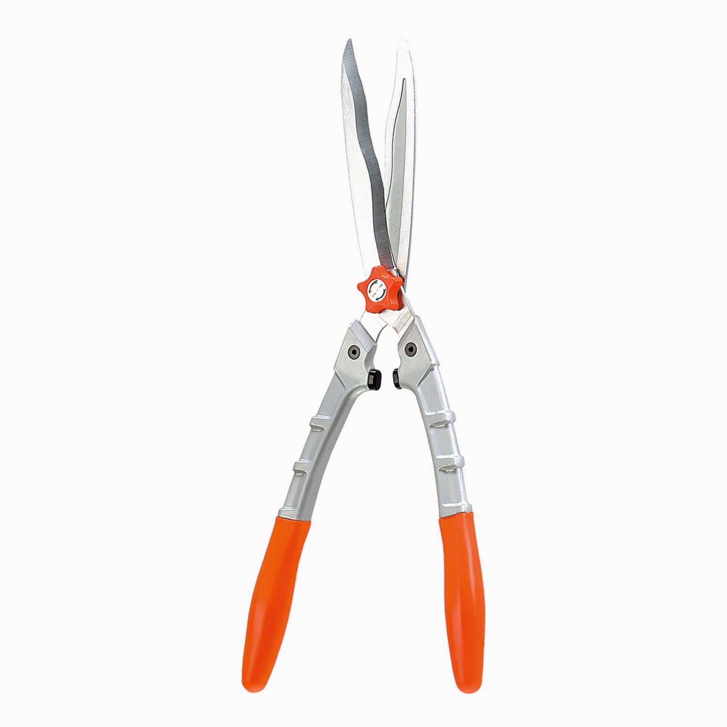 Denna robusta teleskopiska häcksax med vågformat skärblad är lämplig för beskärning av alla häckar och träd. Tack vare sina starka aluminiumarmar är denna häcksax, med sina 1100 g, relativt lätt. Dessutom är skärbladet på denna premium-häcksax helt förkromat.