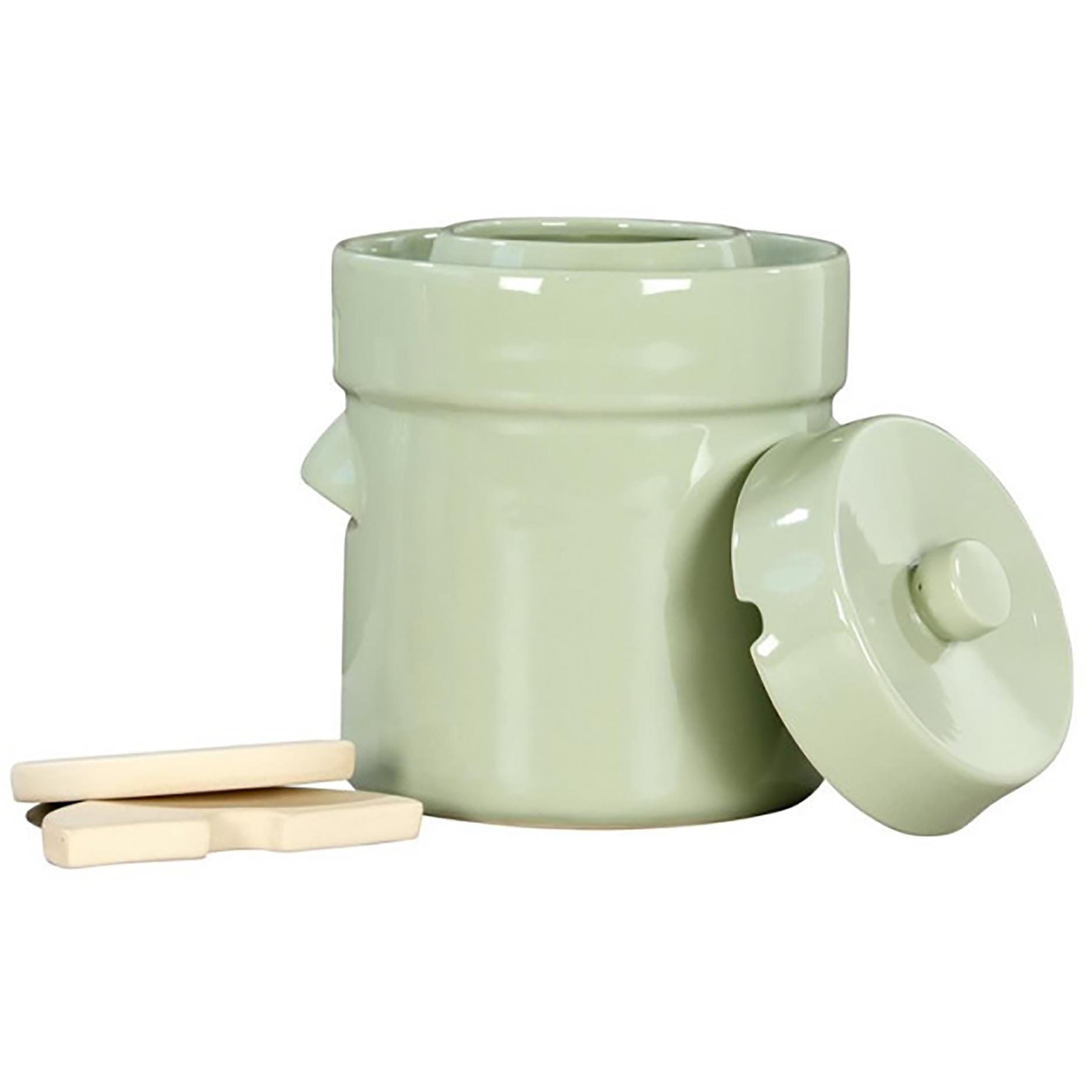 Vill du göra egen surkål, kimchi eller andra fermenterade grönsaker? Den här surkålskrukan på 3 liter hjälper dig i gång med en pålitlig och traditionell fermenteringsprocess. Krukan är särskilt utformad för laktofermentering, där grönsaker fermenteras i sin egen vätska och med salt utan syre.