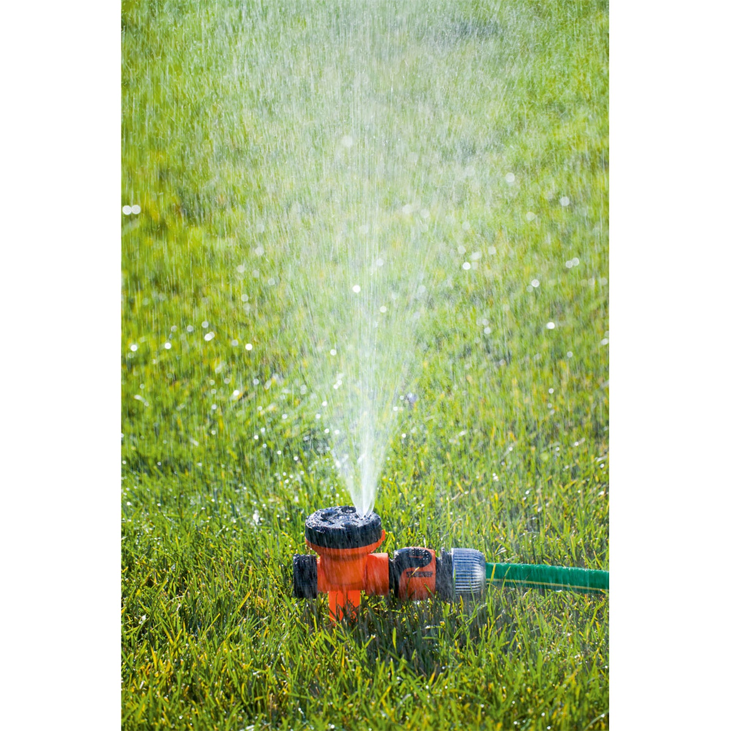 En enkel sektorspridare på en spikett med flera lägen för bevattning av små ytor, såsom odlingslådor, rabatter och framträdgårdar. Spiketten gör denna spridare enklare att sätta ner i etablerade trädgårdar och på ojämnt underlag.