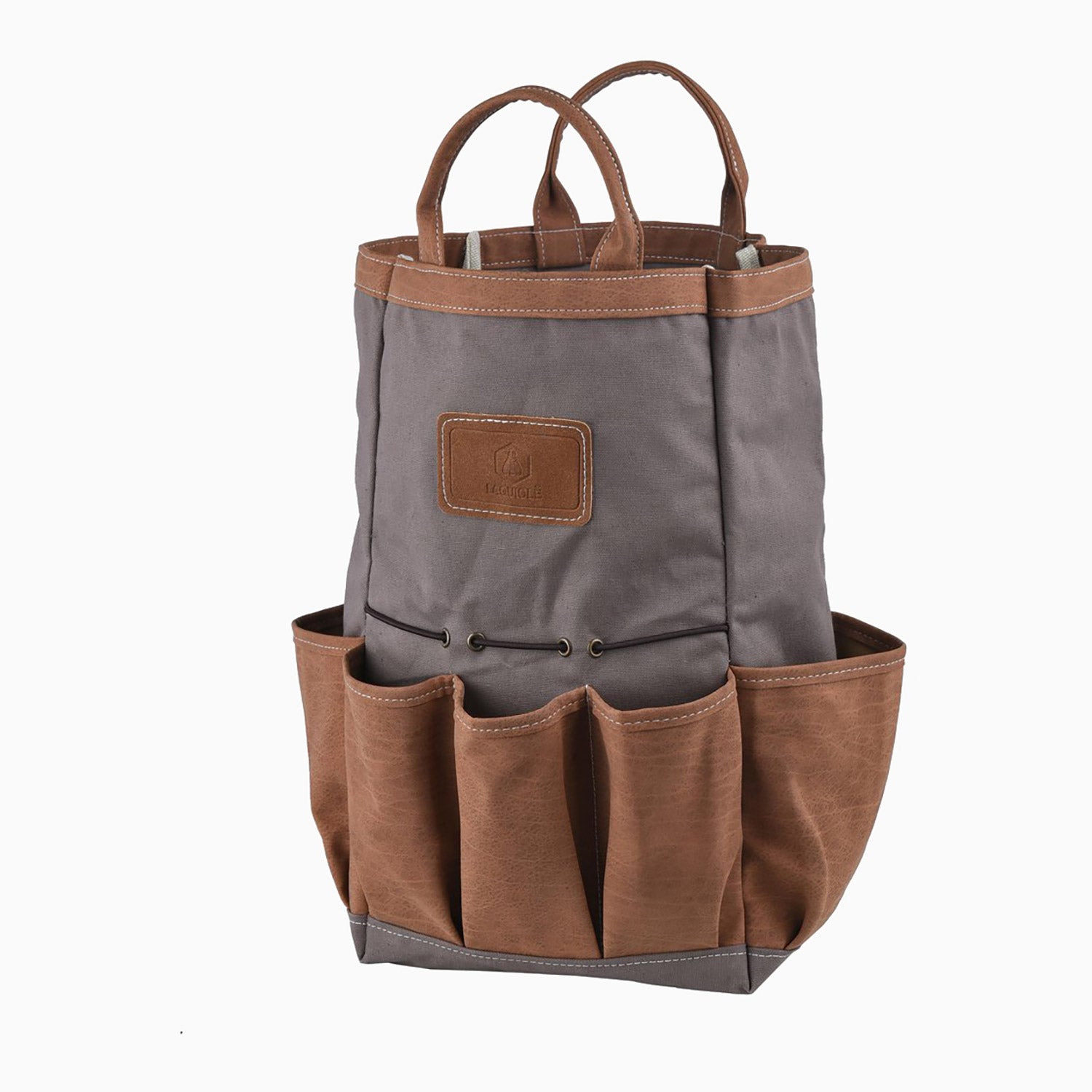 En robust och kompakt trädgårdsverktygsväska från Laguiole passar för alla dina handverktyg. Väskan har 8 fack och 1 stort huvudfack. Yttertyget är av slitstark vaxad bomull. Insidan är av plast, vilket gör väskan mycket lätt att rengöra.