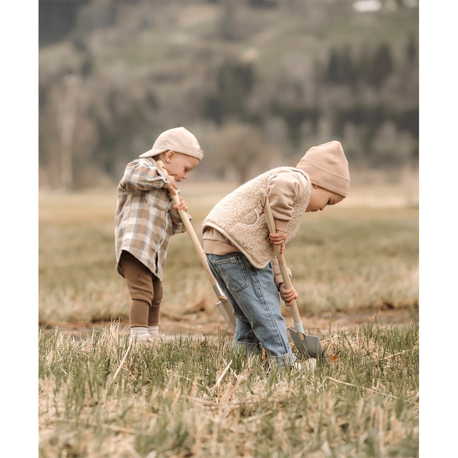 Detta omfattande set med trädgårdsredskap i moderna färger består av en spade, en skyffel, en kratta, en kvast, en hink och två små trädgårdsverktyg. Efter leken kan verktygen i robust trä och metall hängas upp prydligt i de praktiska öglorna.