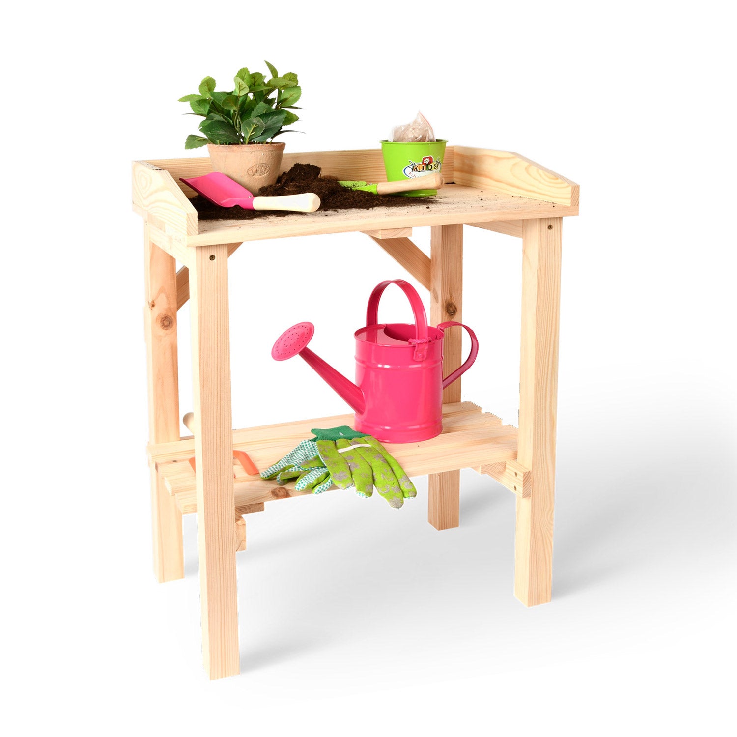 Detta omplanteringsbord är särskilt utformat för barn, så att de kan arbeta i sin egen höjd. Tillverkat av hållbart granträ (100% FSC) erbjuder bordet gott om utrymme för att sköta växter och för att plantera om eller omplantera. Den nedre hyllan ger extra förvaringsutrymme för trädgårdsredskap och andra trädgårdsartiklar, så att allt hålls organiserat och inom räckhåll.