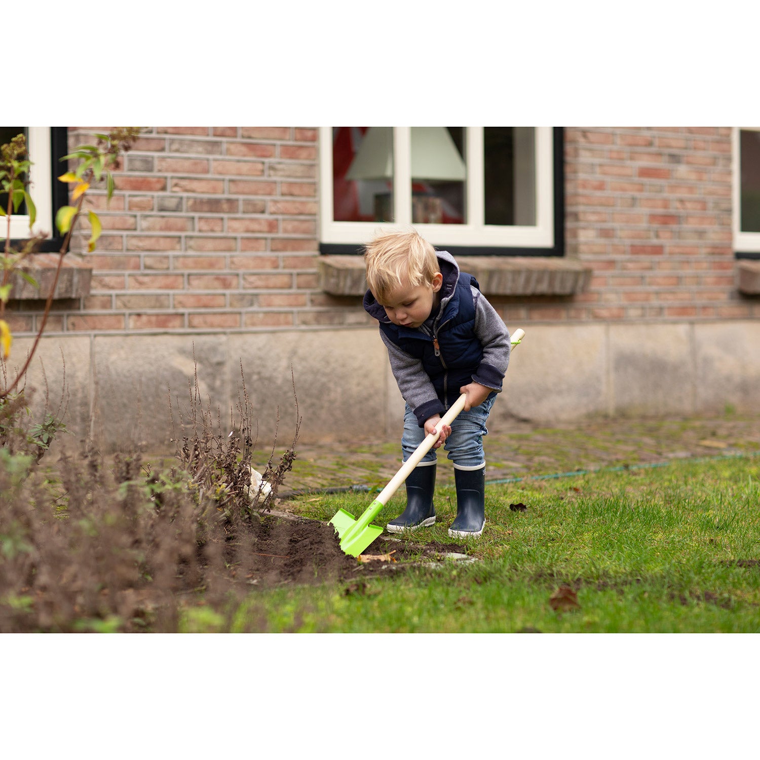 Barn kan använda spaden för att hjälpa till tillsammans med vuxna i trädgården, köksträdgården eller sandlådan, till exempel vid plantering av blommor eller grönsaker. Den barnvänliga utformningen gör det lätt att lära sig hur man håller och använder redskap säkert.