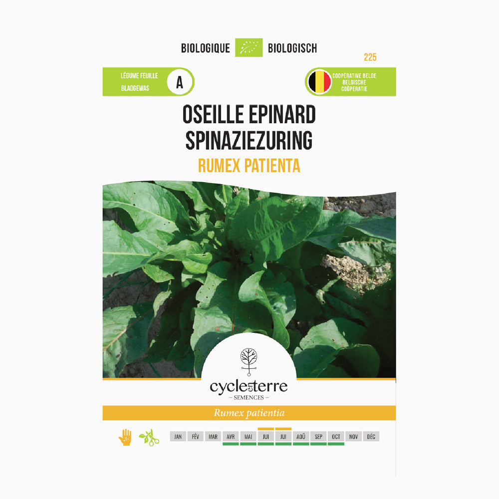 Odlingen av spinat- och trädgårdssyra är enkel och kräver lite skötsel. Så fröna i juni eller juli direkt på friland, med 35 cm radavstånd. Växten trivs både i sol och halvskugga och klarar flera olika jordtyper, så länge jorden är väldränerad. Gödsling behövs sällan, men ett tunt lager kompost kan främja tillväxten. Denna robusta växt växer särskilt bra utomhus och ger färska blad nästan hela året.