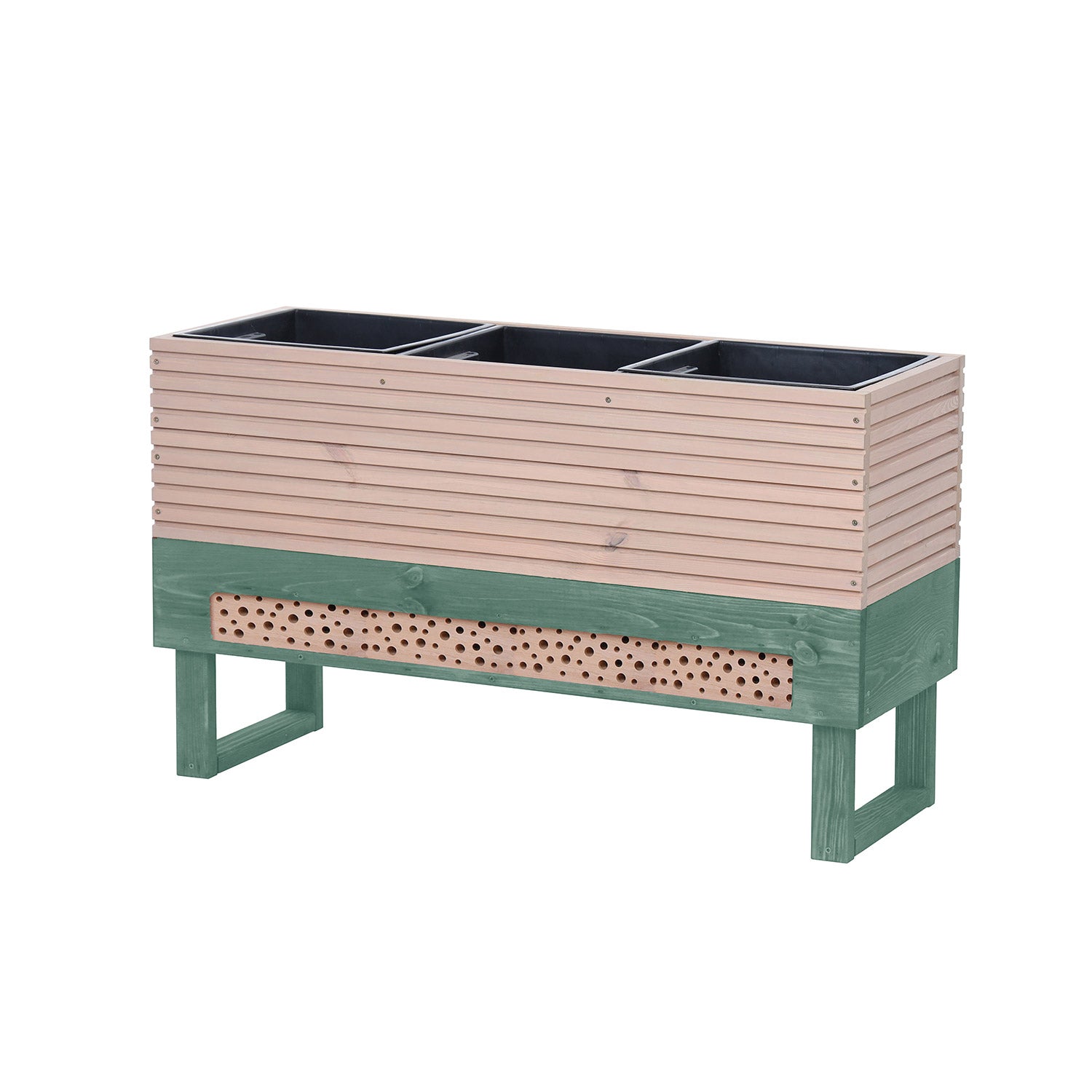 Bestäva och skydda växterna i denna odlingslåda med hjälp av besökarna i det inbyggda insektshotellet. Ett fint, rejält odlingsbord, ett mycket nyttigt insektshotell – och allt i en trevlig färg. Med odlingsborden från Natura Eterna skapar du din egen trendiga köksträdgård.