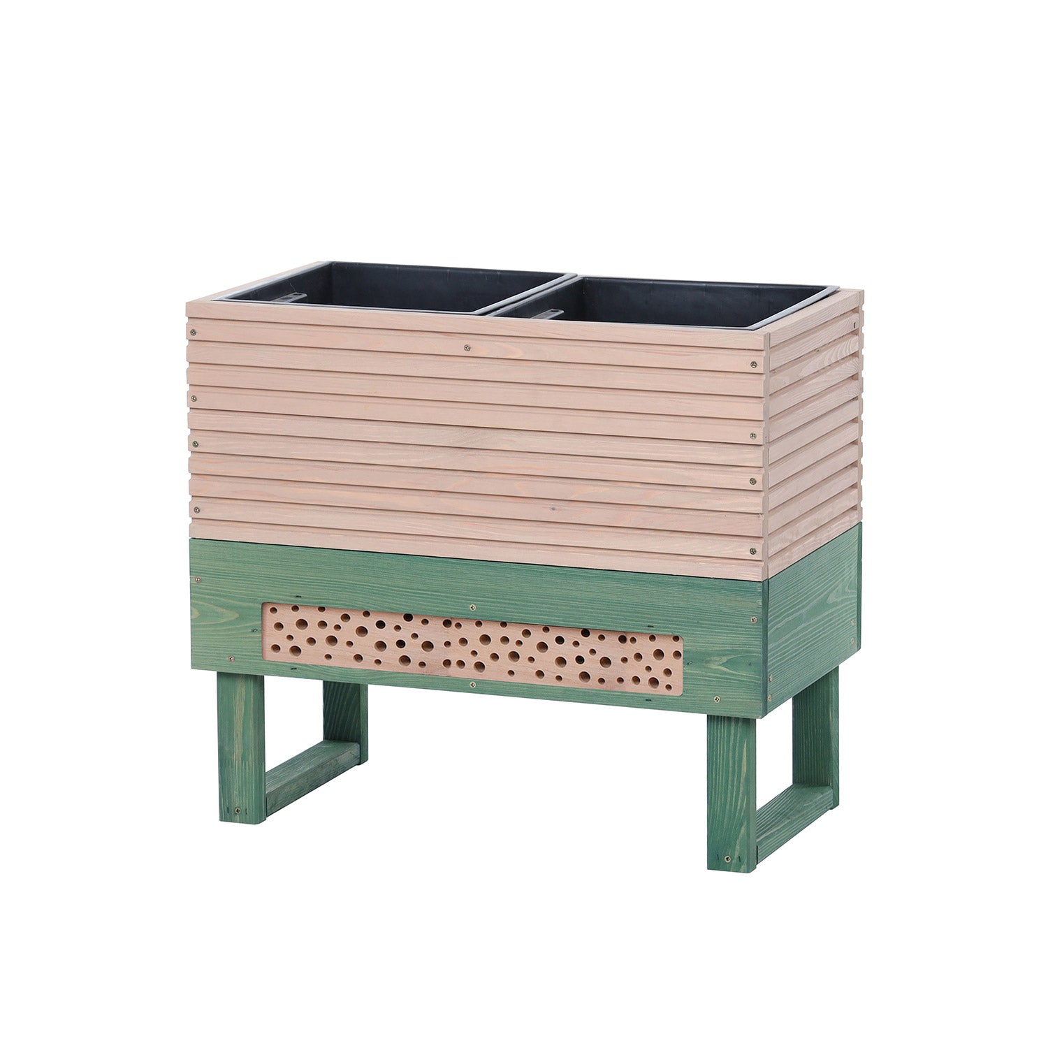 Hjälp till med pollinering och skydda växterna i den här odlingslådan med besökarna i det inbyggda insektshotellet. Ett fint, robust odlingsbord, ett mycket nyttigt insektshotell och allt i en trevlig färg. Med odlingsborden från Natura Eterna skapar du din egen moderna köksträdgård.