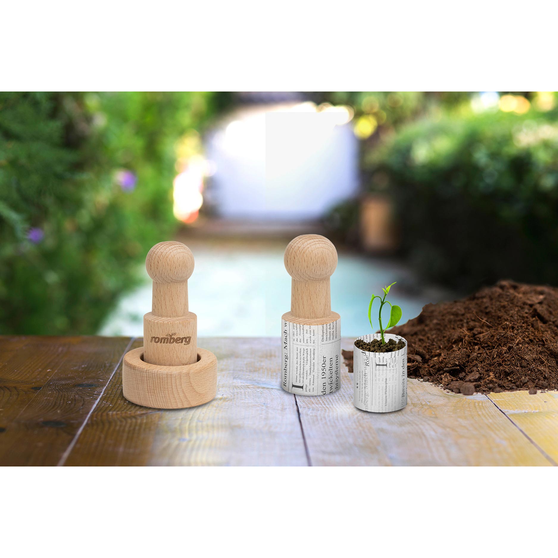 Smart verktyg för att göra odlingskrukor av gamla tidningar. I stället för traditionella blomkrukor av lera eller plast kan ni på ett ekologiskt och enkelt sätt göra egna krukor av papper. Allt som behövs är en bred remsa tidningspapper, och med några enkla moment får ni snabbt fram en kruka. Så ett frö i varje kruka och när plantorna är tillräckligt stora kan de planteras ut i trädgården. Papperskrukorna bryts ned naturligt på kort tid, och rötterna kan fortsätta att utvecklas i jorden.