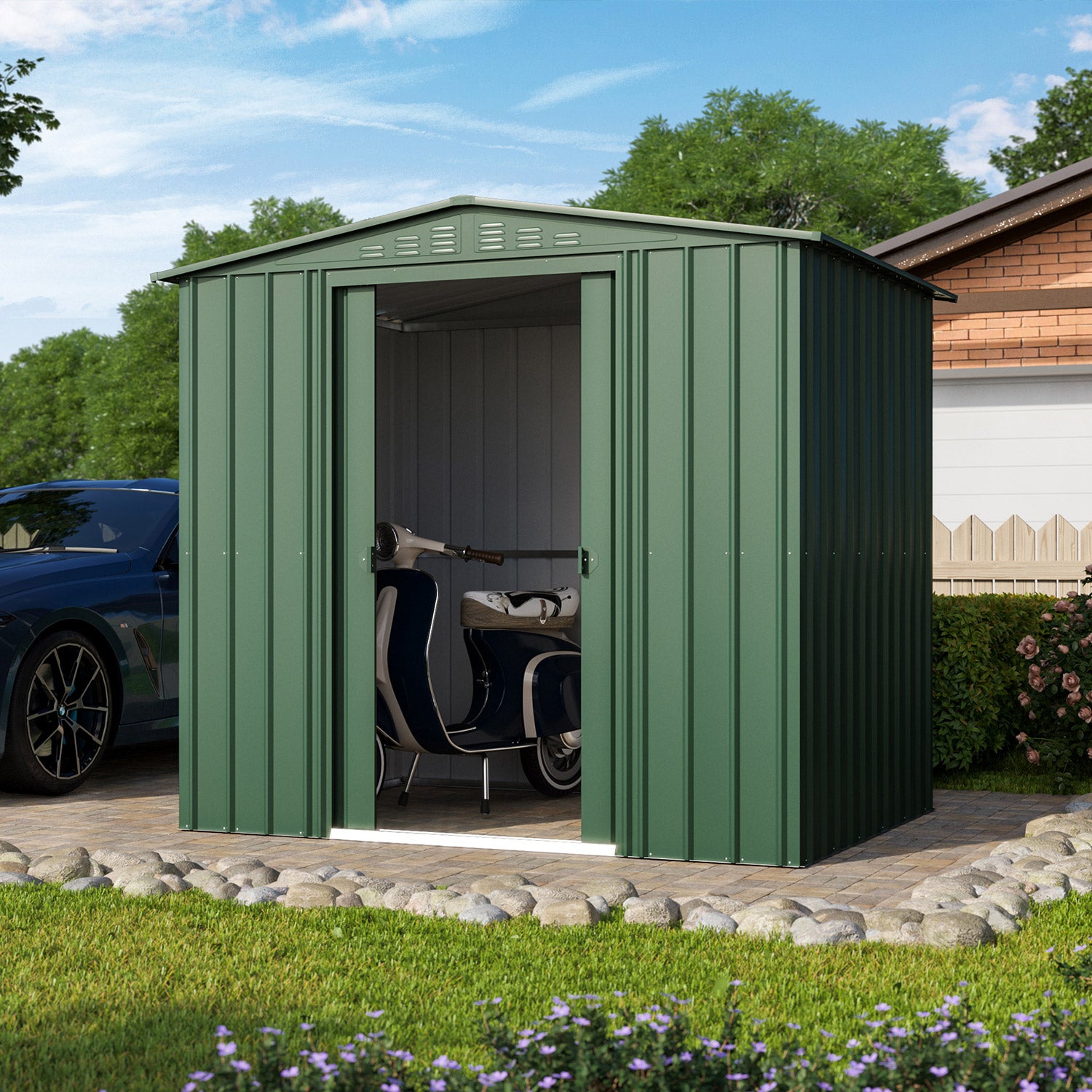 Tower 86 är ett förråd som hos Globel utmärker sig genom sin höjd. Med en nockhöjd på 220 cm kan till och med de flesta basketspelare stå upprätt i detta förråd. Dessutom är Tower 108 ett rymligt förråd med ett modernt utseende. Med en yta på 4,1 m2 får du enkelt plats med cyklar, hyllställ och en arbetsbänk. Detta fina metallförråd finns i 3 färger. Alla utvändiga delar är emaljerade och termiskt varmförzinkade. Denna behandling ger inte bara ett utmärkt skydd mot väder och vind, den är också mycket reptålig och slagtålig. Tower har en dubbel skjutdörr, med en sammanlagd bredd på 105 cm.