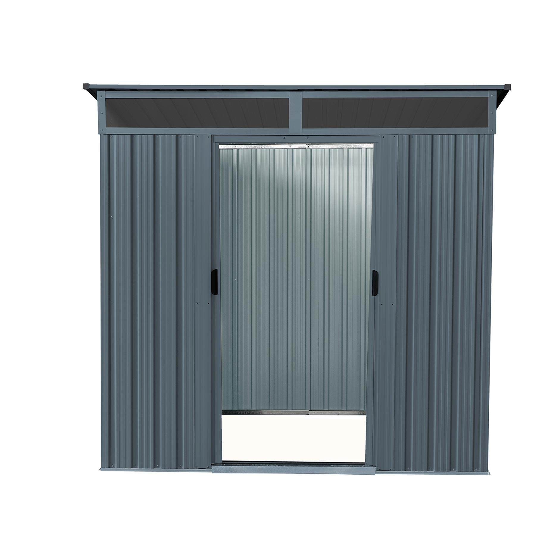 Ljusinsläppet ovanför de dubbla skjutdörrarna ger extra (dags)ljus. Har du ett litet utrymme där du inte får plats med en slagdörr? De dubbla skjutdörrarna behöver inget extra utrymme för att öppnas. Och när det snöar går de också att öppna som vanligt. Lüttich 65 har en golvyta på 2,94m2 och har två paneler på framsidan. Den högsta delen av taket är 180cm och den lägsta delen är 157cm.