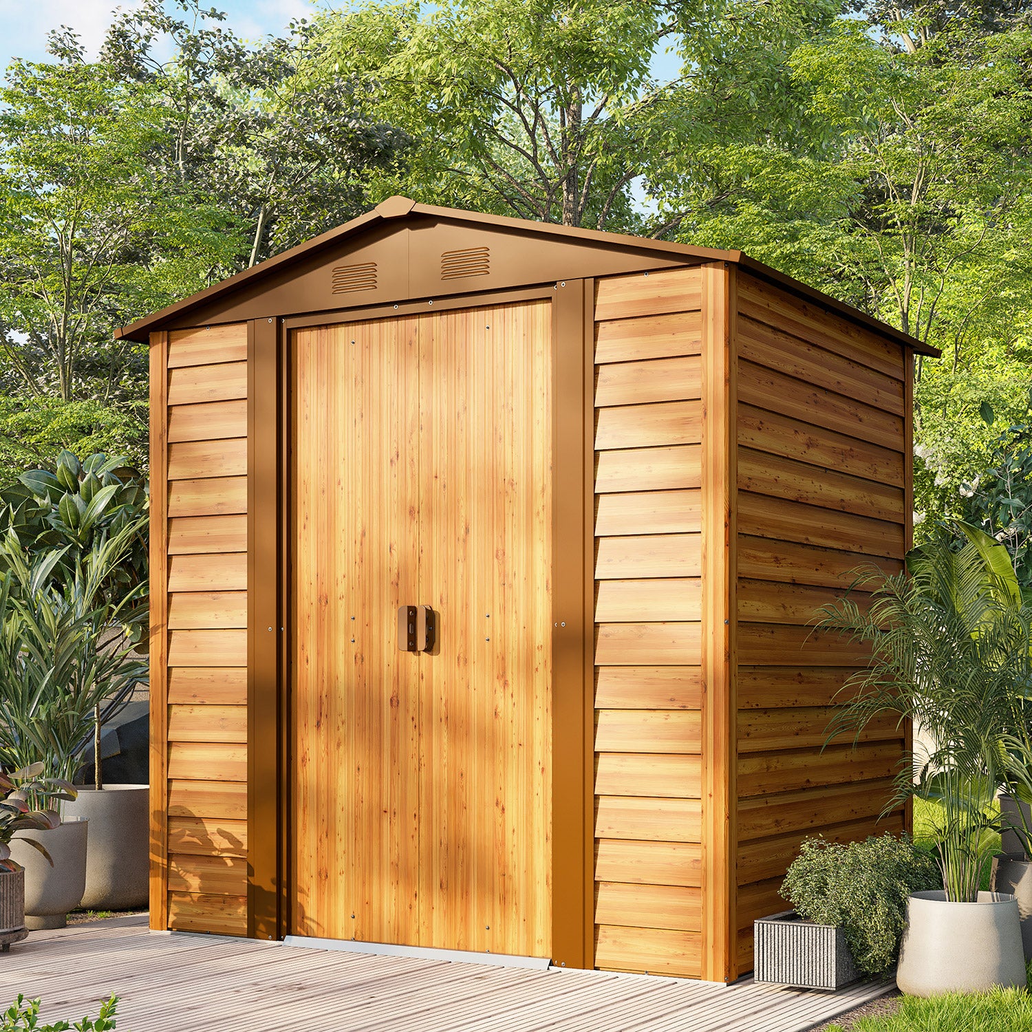 Frankfurt II 65 är en kompakt metallförråd med en yta på 2,48m2. Låt dig inte luras av träimitationen – detta förråd är helt tillverkat av galvaniserat, förzinkat stål. Perfekt om du vill ha ett naturligt utseende, men inte det underhåll och den väderpåverkan som hör till ett träförråd. Alla utvändiga delar är av galvaniserat stål och ger ett utmärkt skydd mot väder och vind. Med 2 mycket generösa skjutdörrar, med en (sammanlagd) bredd på 125cm, kan du utan problem rulla in skottkärror, cyklar eller motorcyklar.