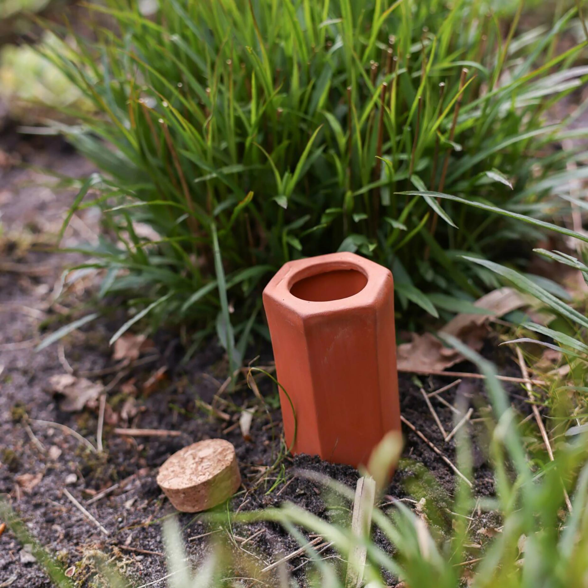 Bevattningspipen är tillverkad av oglaserad terrakotta och levereras med en kork, så att du enkelt kan försluta den efter påfyllning. En praktisk lösning för dig som vill vattna medvetet och effektivt.
