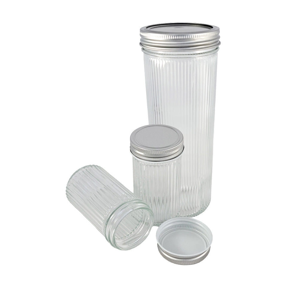 Den helt nya Ripple-glas kollektionen. Kan användas för att förvara din mat eller helt enkelt som en elegant dekoration. Kan användas för flera ändamål: förvara maten, frys in maten, fermentera eller servera dina egna inlagda oliver eller tomater.