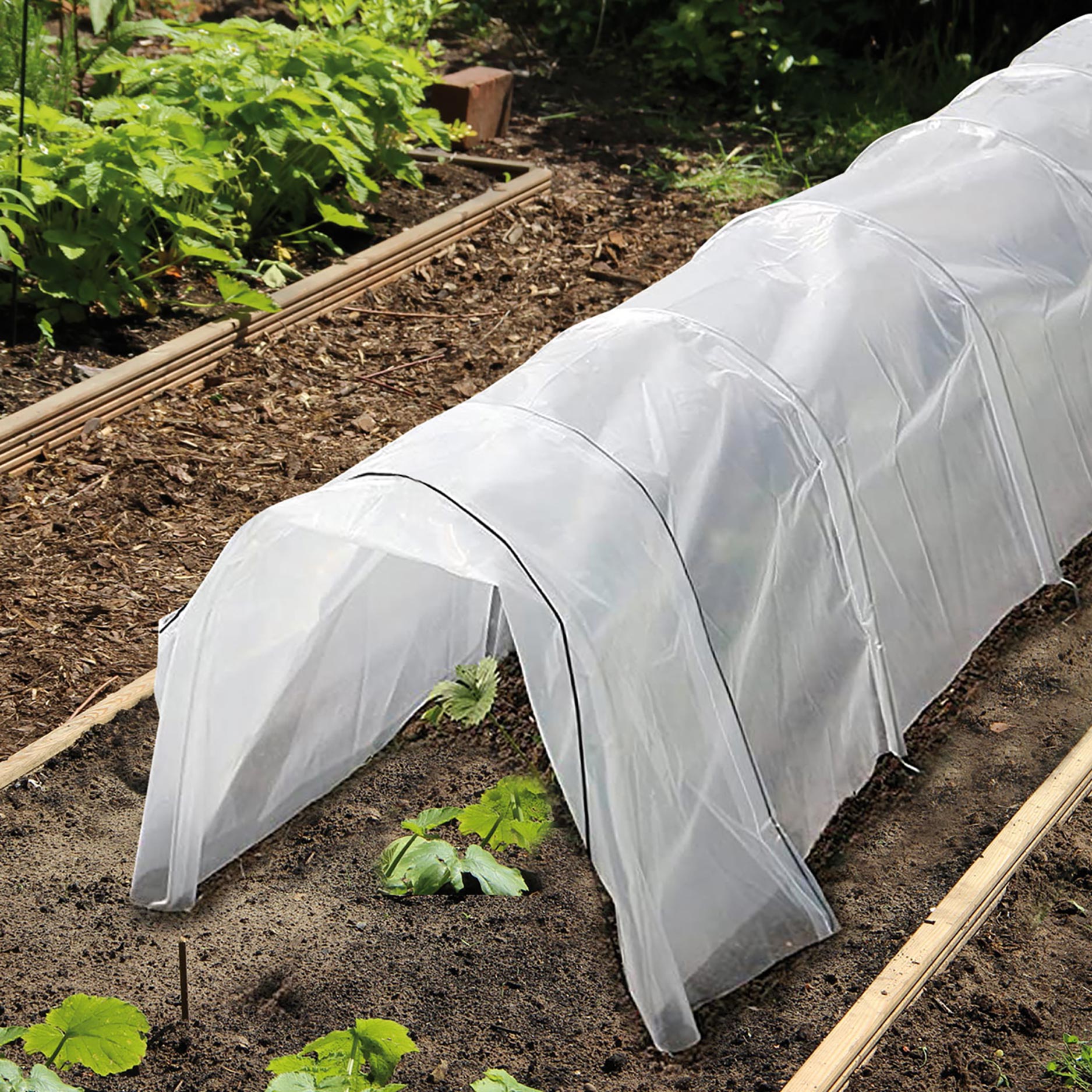 Fiberduken är enkel att spänna över bågstänger eller andra stödkonstruktioner och att ta bort igen när du vill. På så sätt använder du växttunneln precis där och när du behöver den, utan krångliga fästsystem.