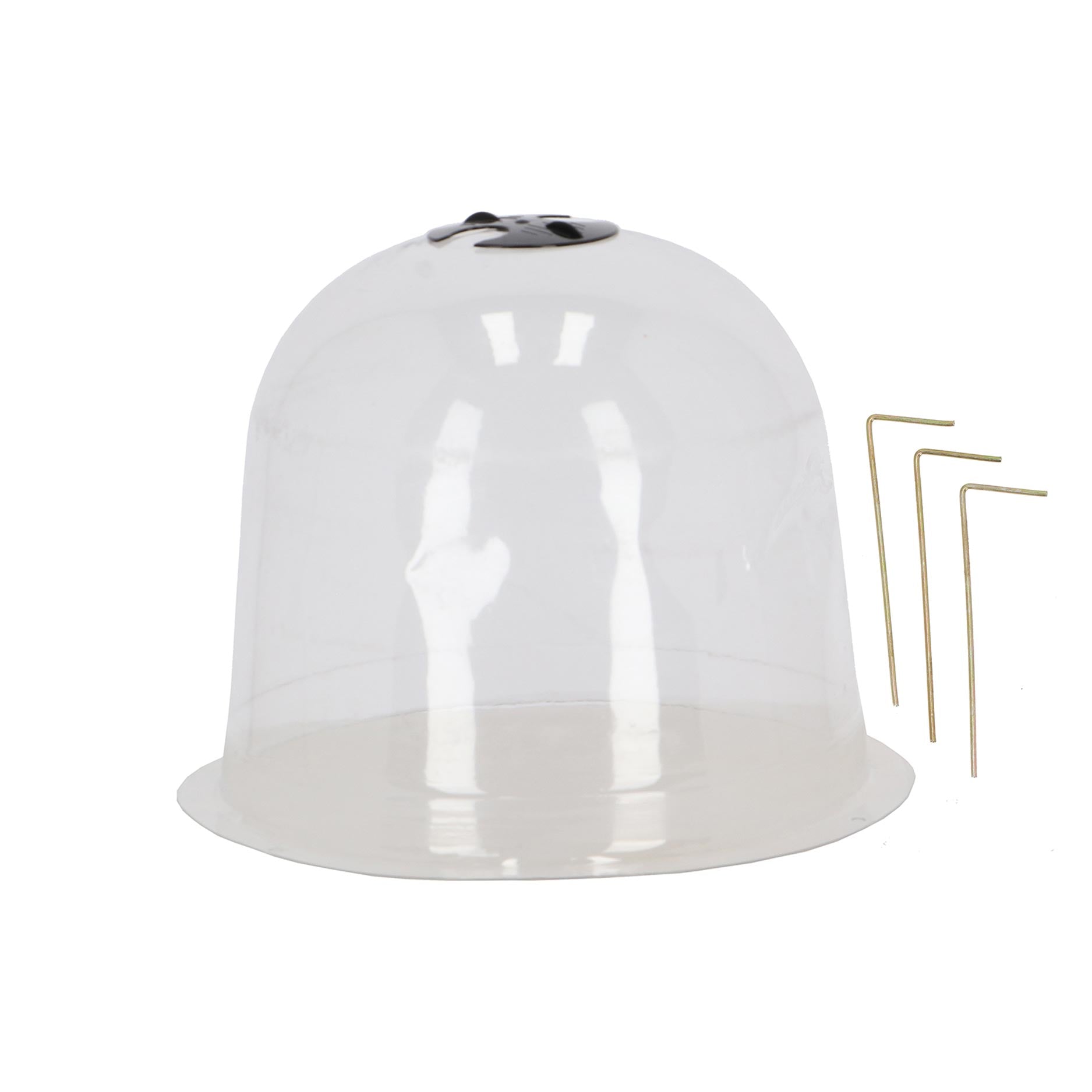 Använd kupan genom att sätta den över din småplanta eller unga planta och trycka ner kanten lätt i jorden. Fäst den sedan med pinnarna så att den inte glider eller blåser omkull i vind. Med kåpan ovanpå reglerar du lufttillförseln: öppna mer under varma eller soliga dagar och stäng något vid kyla eller hård vind för att skapa ett skyddat mikroklimat. På så sätt hjälper du växterna att växa jämnare och förebygger skador i den känsliga startfasen.