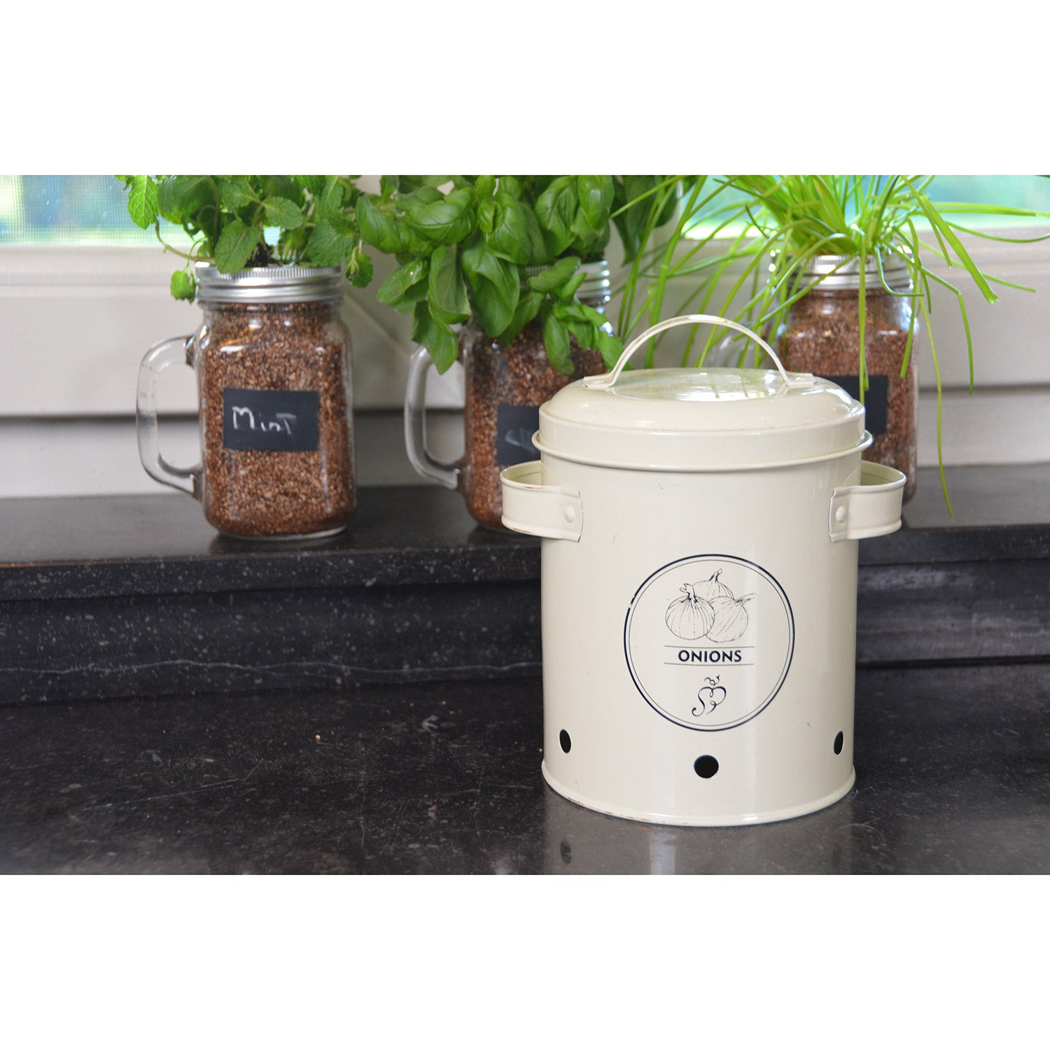 Farmor visste det redan förr: lök förvaras bäst på en mörk plats som samtidigt är välventilerad. Med denna autentiska förvaringsburk kan lök förvaras på ett idealiskt sätt i köket, med liten risk för att den börjar gro.