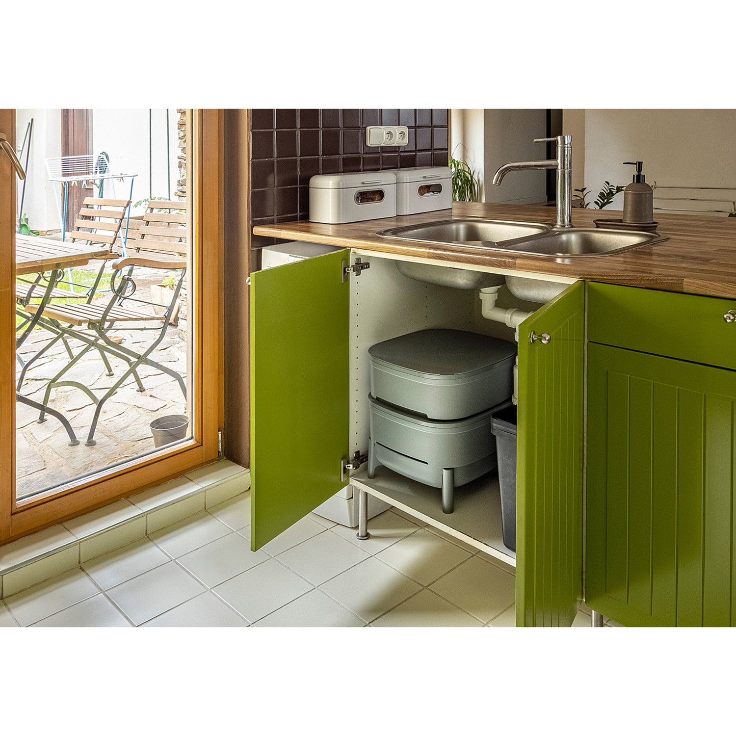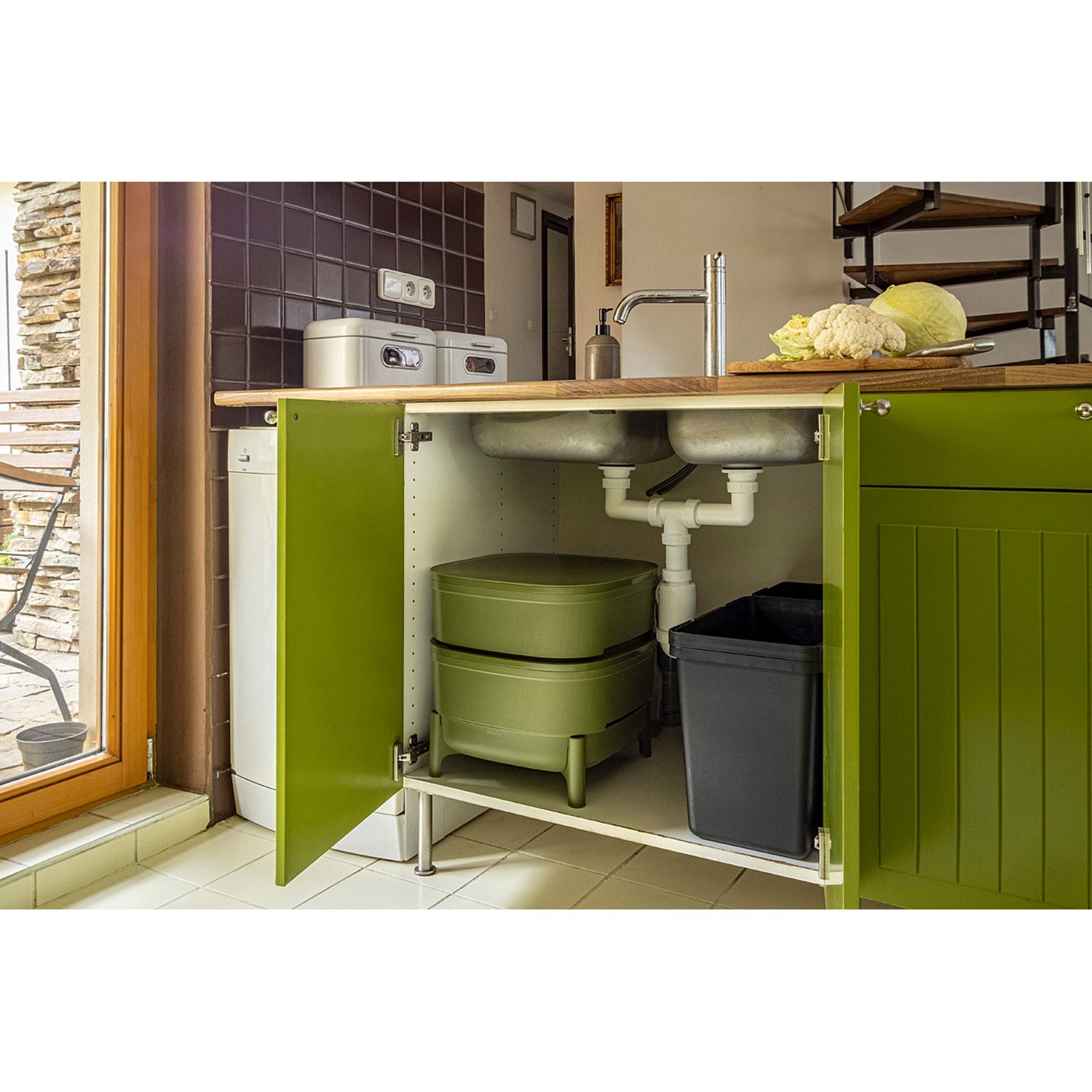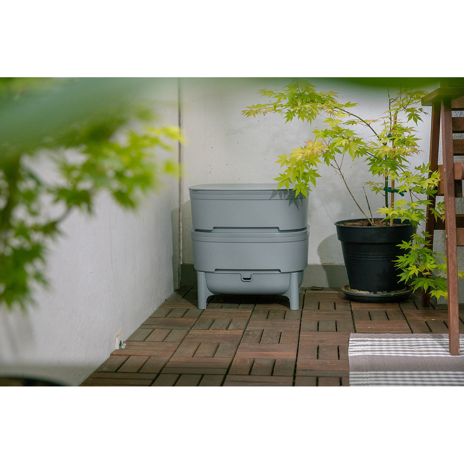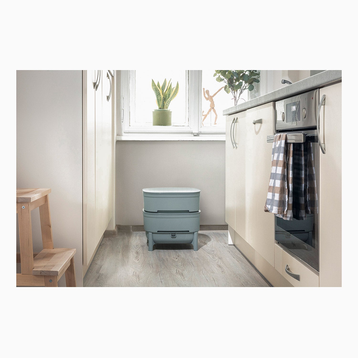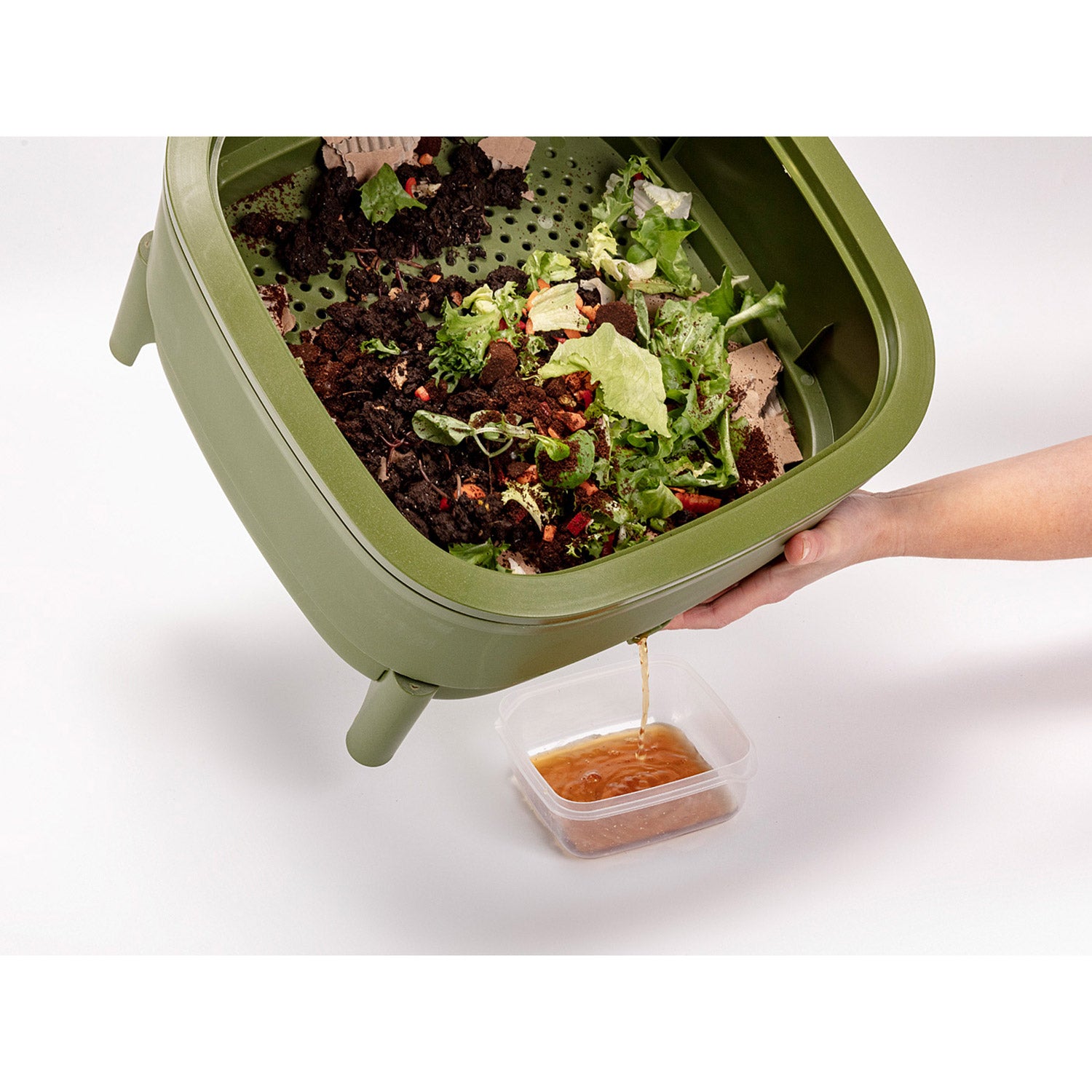 Wormhotellet från Plastia är en kompakt kompostbehållare på 38 × 38 × 38 cm, lämplig för köket eller en annan plats inomhus. Med den kan du omvandla ditt matavfall till kompost, smidigt hemma hos dig. Wormhotellet levereras utan maskar.