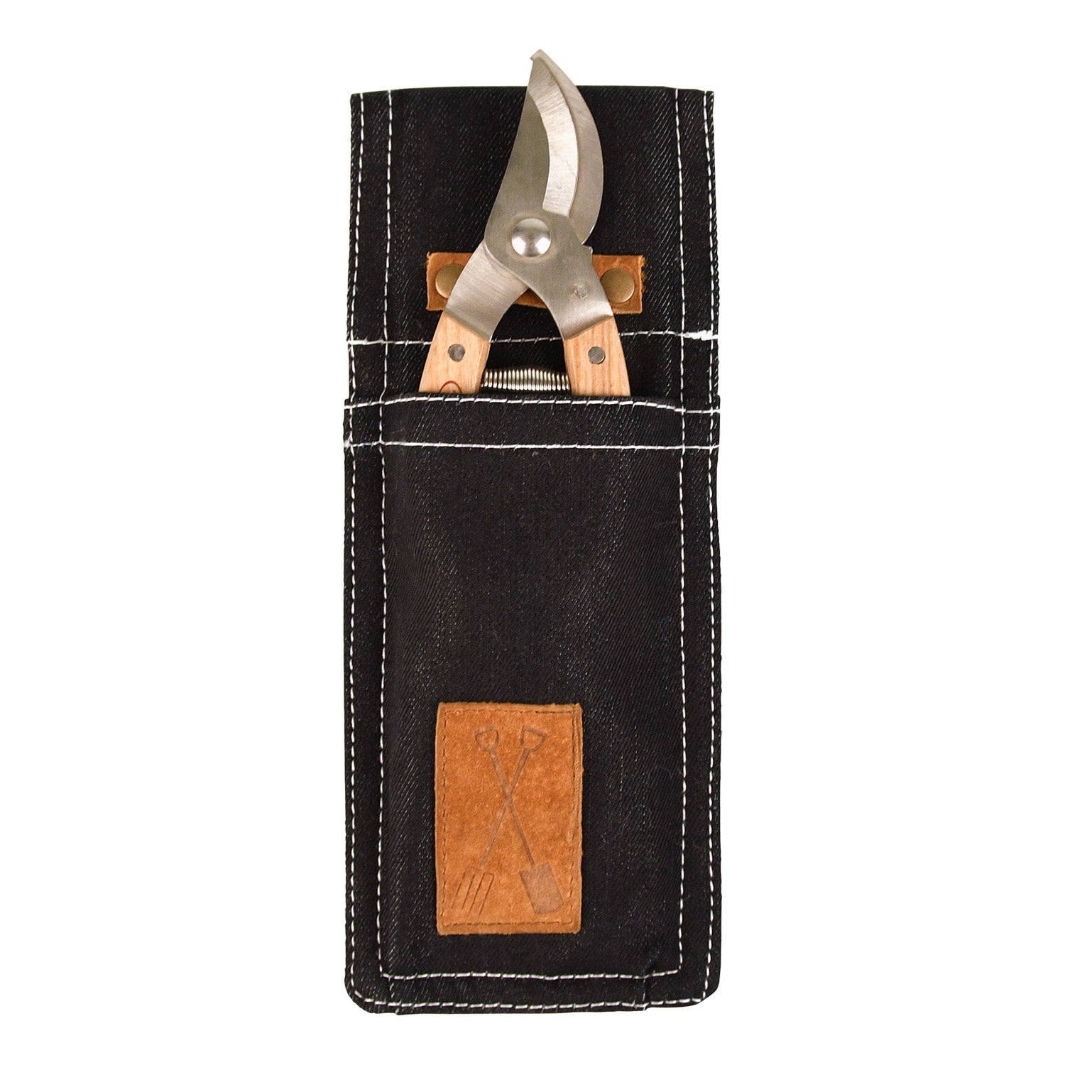 Detta verktygshölster är tillverkat av denim. Detta verktygshölster kan fästas i ett bälte så att en sekatör eller annat verktyg finns nära till hands när du arbetar i trädgården.