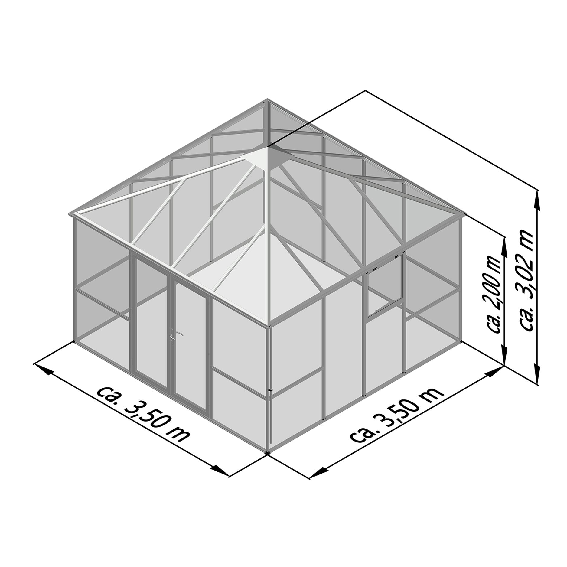 Mått: 350 x 350 x 302cm (l x b x h)