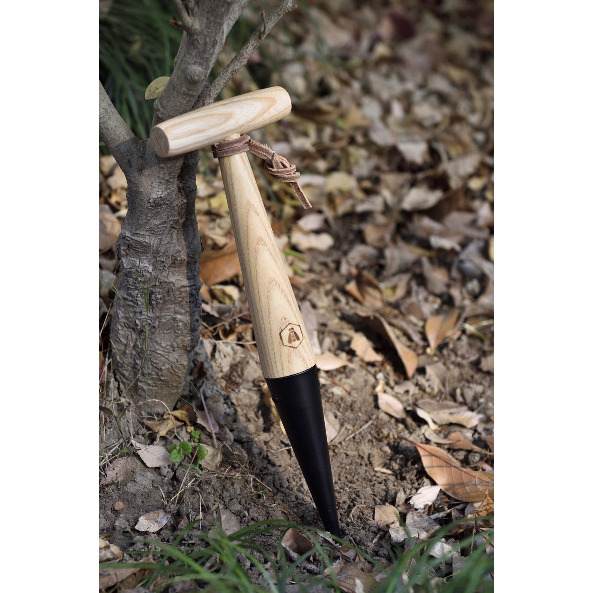 • Material: mattsvart rostfritt stål, handtag i ask och läderögla