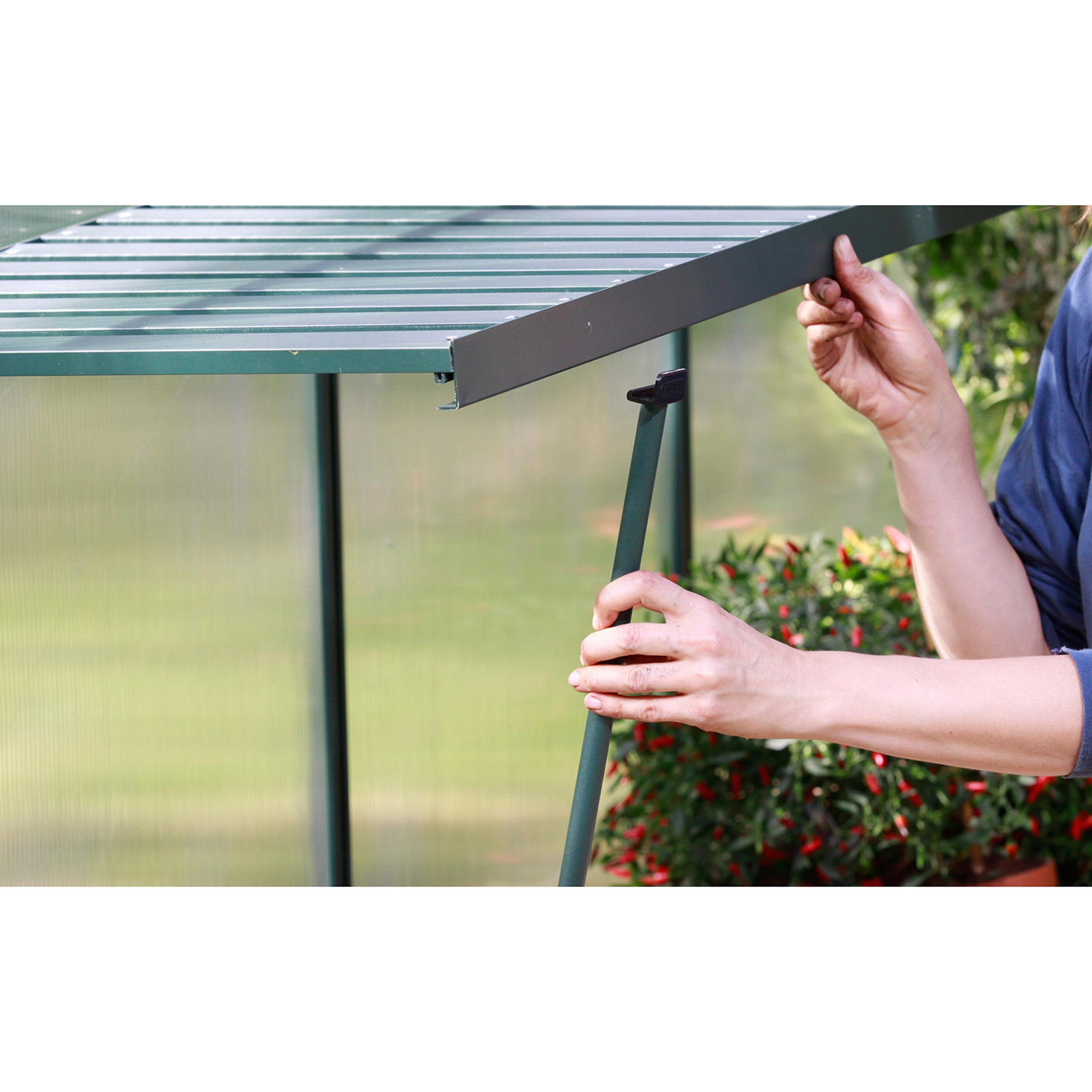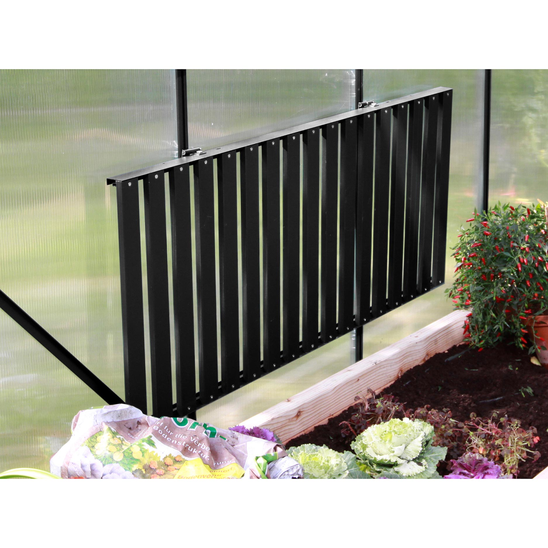 Det är mycket enkelt att använda det fällbara odlingsbordet. Du fäster bordet stadigt på väggen i Vitavia-växthuset och kan därefter fälla ned eller upp det efter behov. På så sätt skapar du på ett ögonblick extra utrymme för sådd, omplantering eller skötsel av dina växter, utan att du permanent förlorar arbetsyta. När du inte längre behöver bordet fäller du upp det igen och håller växthuset prydligt och överskådligt. Den här flexibiliteten gör odlingsbordet idealiskt för både nybörjare och erfarna odlare.