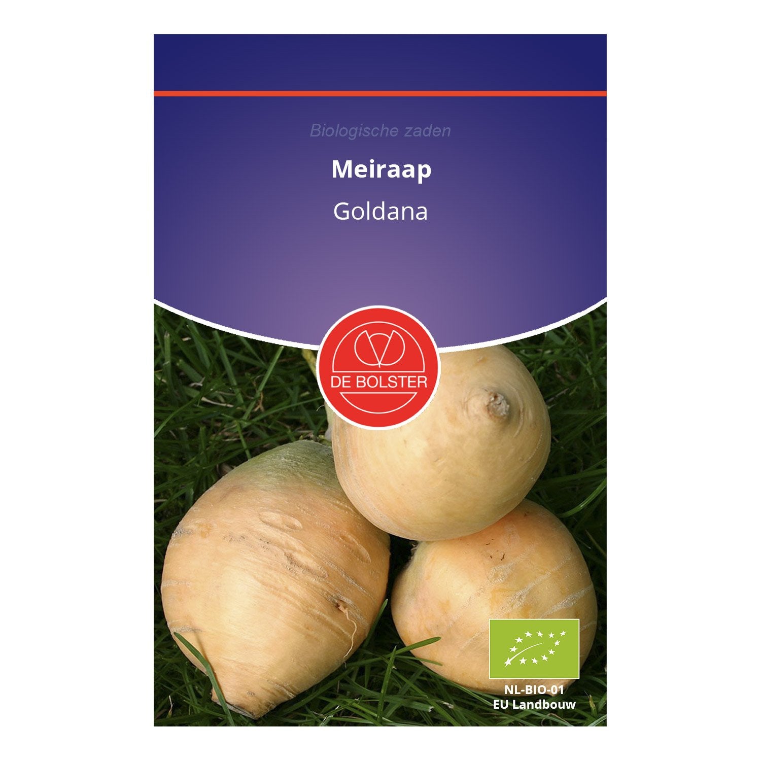 Majrova 'Goldana' (Brassica rapa, typ Ronde Gele) är en vackert rund rotknöl med en solgul färg, både invändigt och utvändigt. Denna höstmajrova är känd för sin snabba tillväxt och för att både knölen och bladen är ätliga, vilket gör den till ett mångsidigt tillskott i din köksträdgård.