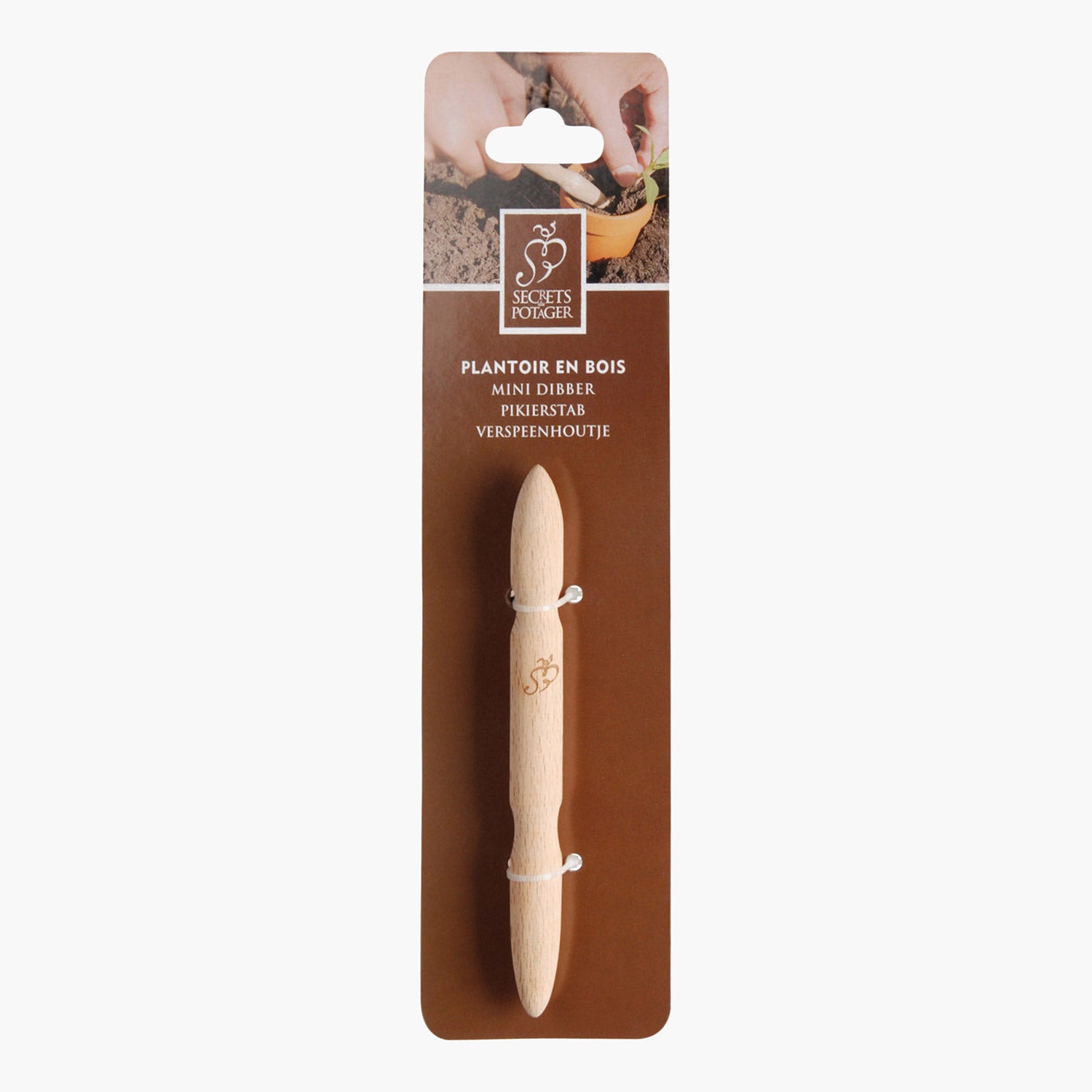 Traditionella trädgårdsredskap för alla med gröna fingrar. Det hållbara materialvalet gör att redskapet håller länge. För både omskolning och gallring av plantor är denna planteringspinne en praktisk hjälp. De två ändarna med olika tjocklek och rundning förhindrar att de små plantorna skadas.