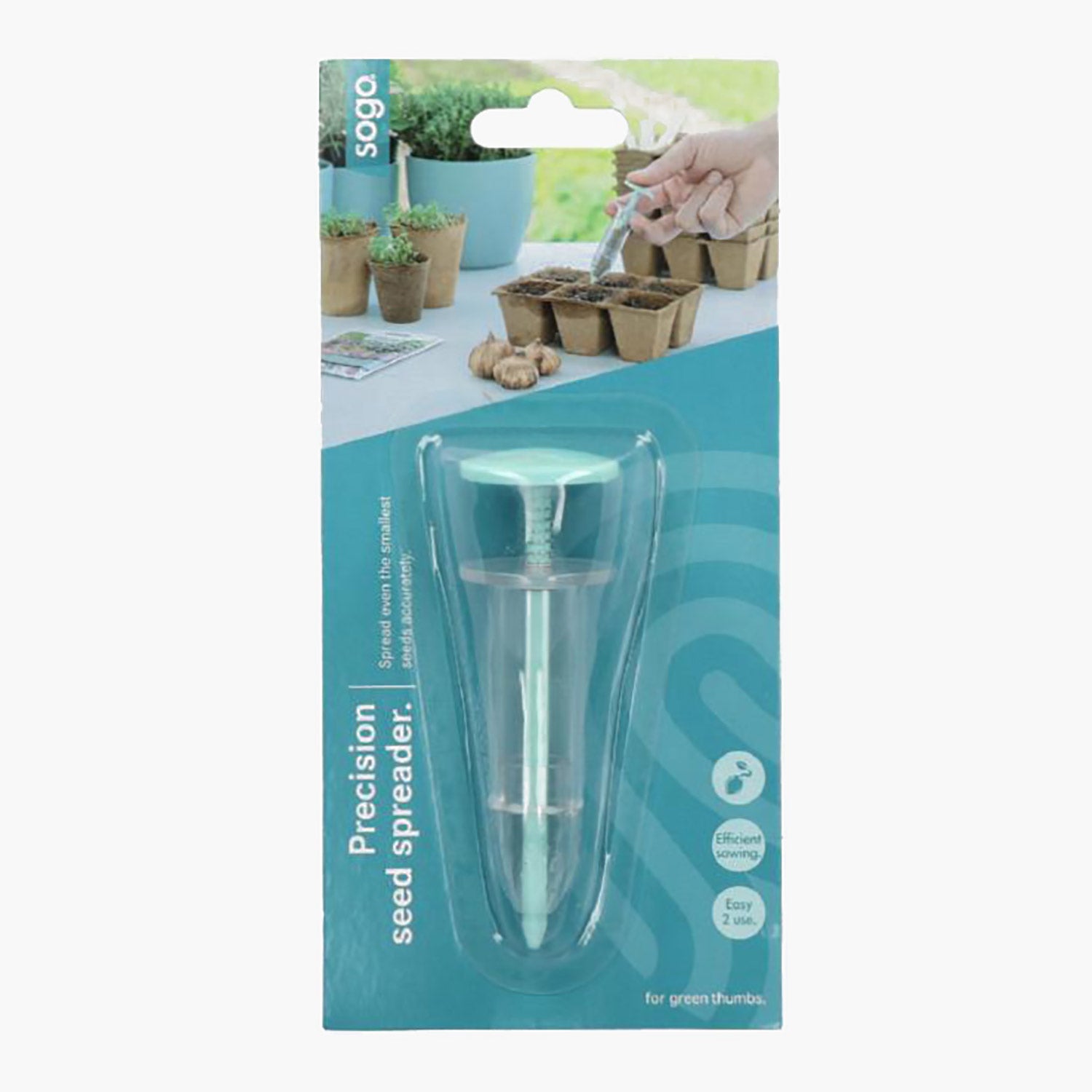 Denna fröspridare är mycket lämplig för fin sådd; plugfjädern ser till att fröna släpps igenom långsamt. Idealisk för att särskilt små frön ska kunna doseras korrekt.