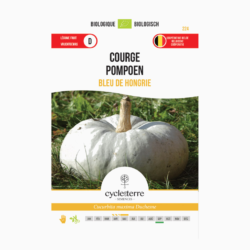 Blå ungersk pumpa är en särskild sort som utmärker sig med sitt blågrå skal och imponerande storlek. Frukterna väger mellan 3 och 8 kg och har ett tjockt lager gult fruktkött. Denna pumpa har en mild smak och är idealisk för dig som föredrar mindre söta rätter. Plantan ger 2 till 4 frukter per planta och har mycket goda lagringsegenskaper: pumpan kan förvaras i upp till 6 månader.