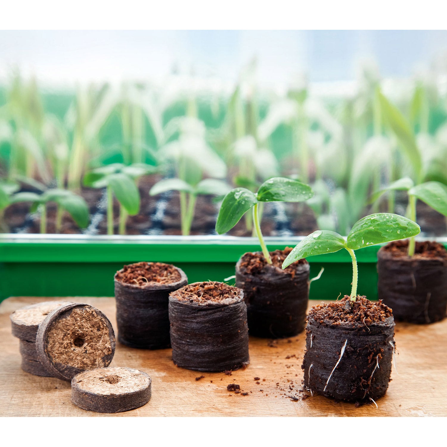 Dessa kokosbriketter för sådd och sticklingar med en diameter på 36mm är 100% torvfria och innehåller särskild startgödsel. De levereras i förpackning om 100 st.