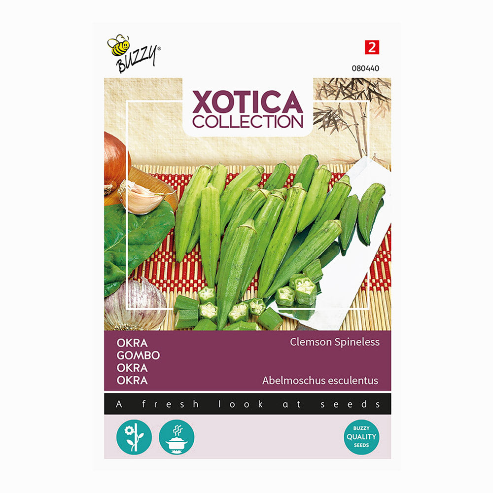 Så okra inomhus från mitten av mars vid en temperatur på 21–23ºC. Efter cirka sex veckor, när de unga plantorna är tillräckligt starka, kan du plantera ut dem i slutet av maj i ett växthus eller en inglasad veranda. Plantan behöver gott om utrymme och kan bli upp till 2 meter hög, så se till att placera dem med 40x50 cm avstånd. Vid behov kan du tillföra kompost för extra näring. Stöd plantan ordentligt med snöre eller pinnar, eftersom okra kan bli topptung i takt med att frukterna växer. Blomningen är mycket vacker, och du kan skörda frukterna från juli till september. Det är viktigt att skörda frukterna tidigt, innan de blir sega.