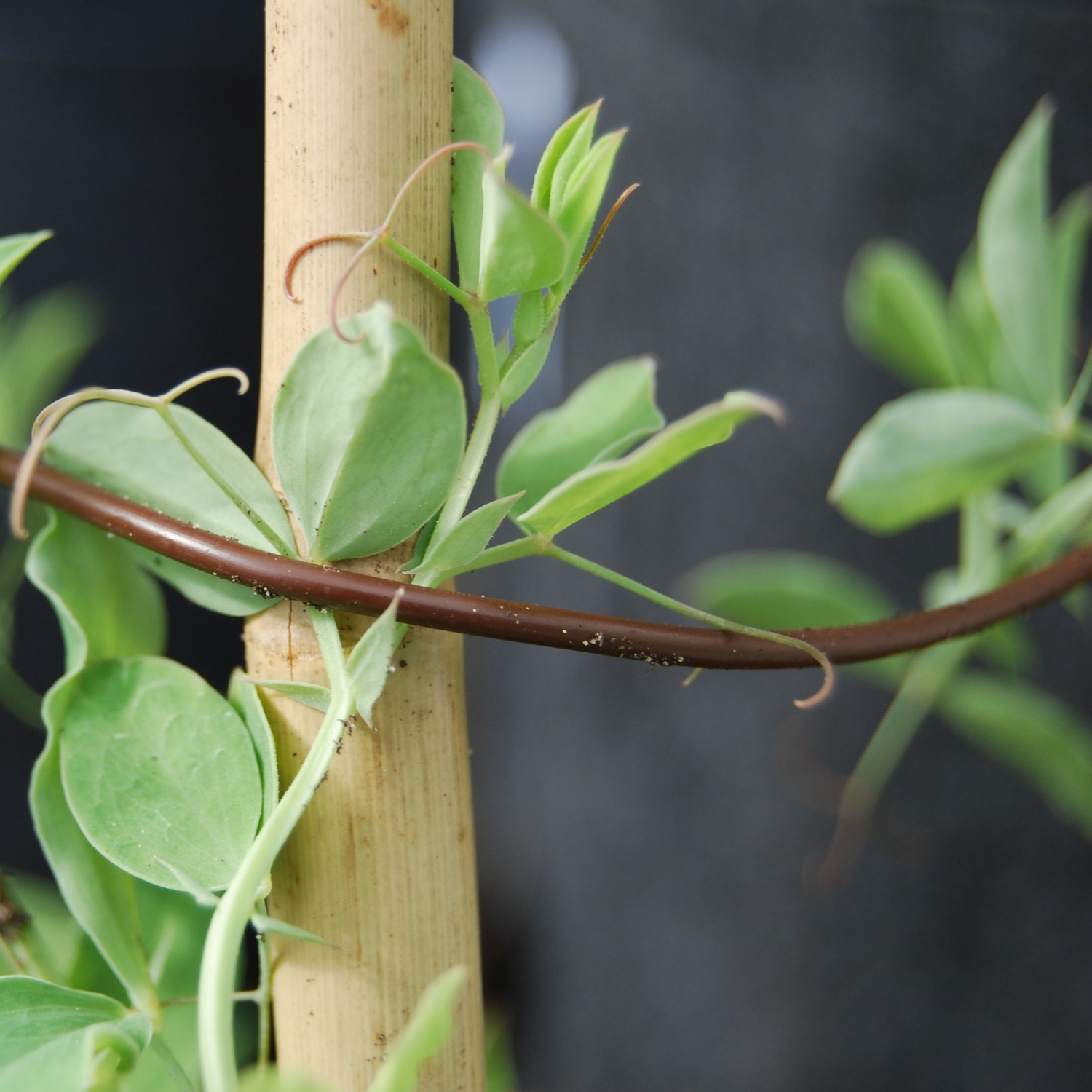 Ni fäster bindröret genom att leda det runt stjälken och stödet och sedan försiktigt dra åt tills det ger stöd. Eftersom materialet har viss elasticitet anpassar det sig till en begränsad tillväxt. Ni klipper av den återstående biten och kan förlänga eller förkorta röret efter behov.
