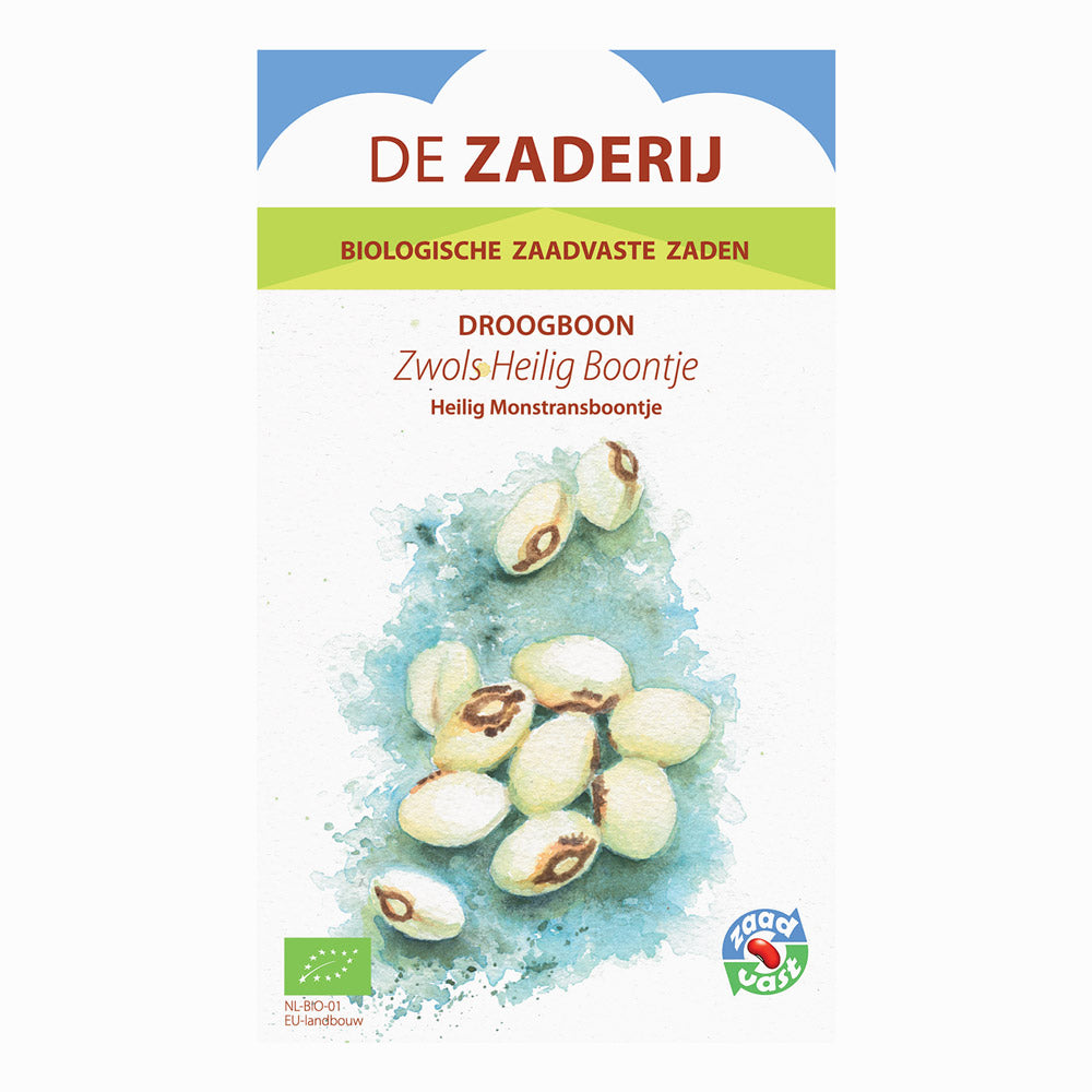 Zwols Heilig Boontje, även känd som Monstransboontje, är en särskild torkböna med en karakteristisk teckning på fröna – en mörk fläck i form av en monstrans eller en liten ängel. Denna gamla sort odlas för den torkade bönan och är känd för sin fylliga, nästan kastanjelika smak. Det är en böna med historia, som har sitt ursprung i regionen kring Zwolle och fortfarande är omtyckt av entusiaster av traditionella sorter.