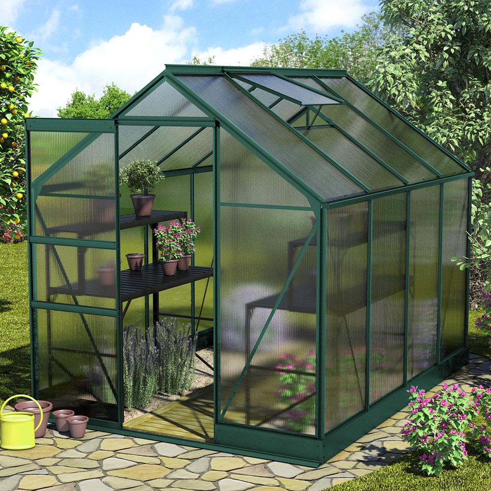 Vitavia Apollo 5000 är ett kompakt växthus med en rymlig känsla, idealiskt för dig som vill odla effektivt på begränsad yta. Med en nockhöjd på 207cm och 5m² golvyta erbjuder detta växthus gott om plats för tomater, kryddor eller blommor, samtidigt som du kan arbeta bekvämt. En stor fördel är den sänkta tröskeln: där många växthus har en upphöjd kant kliver du här in utan tröskel. Det gör användningen smidigare, särskilt när du flyttar odlingslådor eller verktyg.