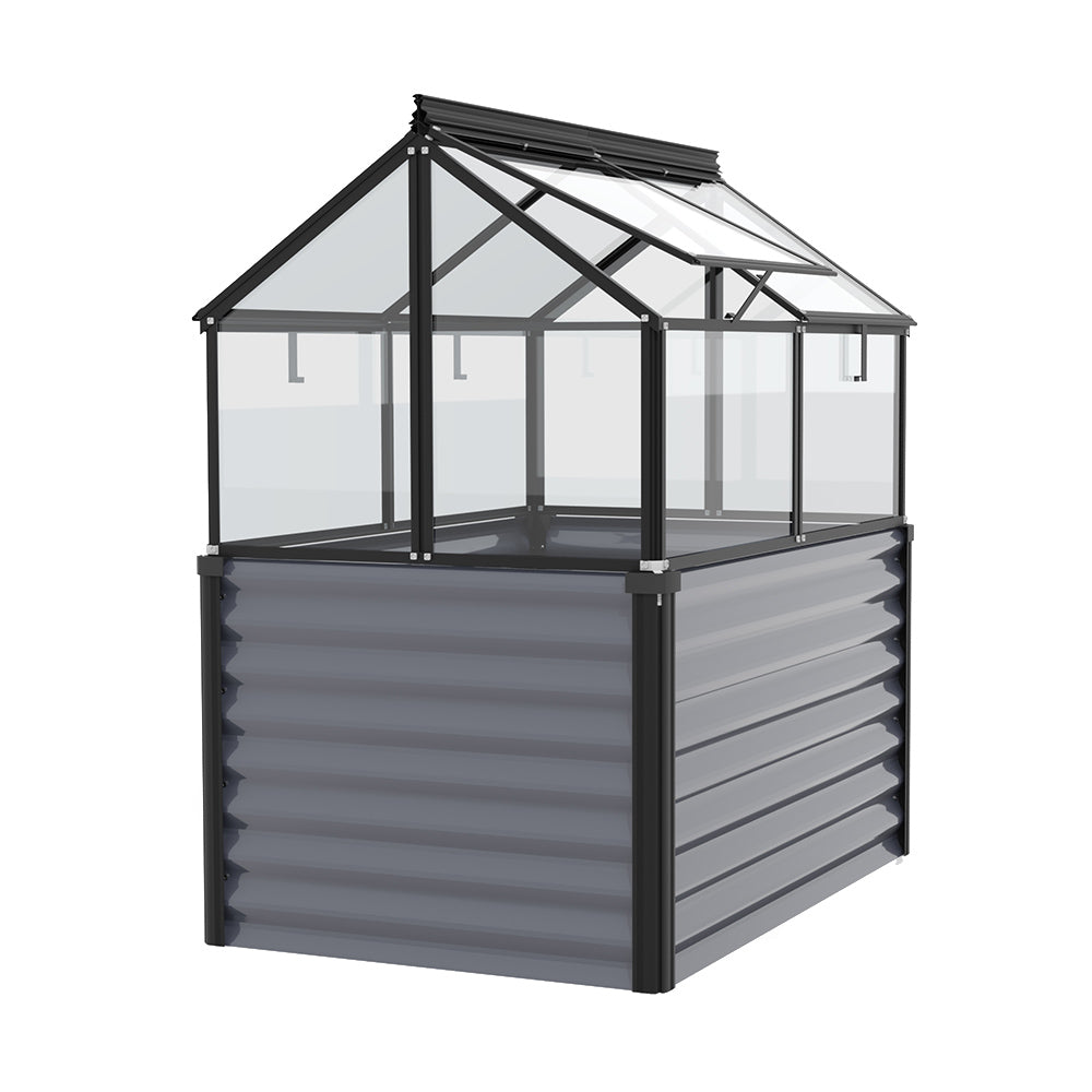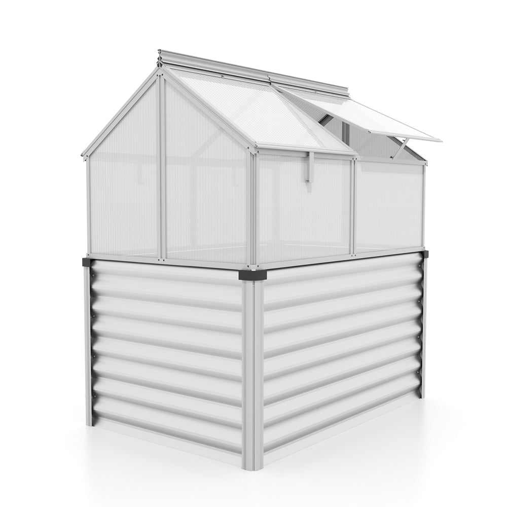 Vackrare än den upphöjda Odlingslåda Gaia Jumbo blir det knappast! Utförandet i glas är både snyggt och bra för odlingen. Denna version är Odlingslåda Gaia Jumbo på en specialtillverkad, högkvalitativ låda av kraftiga aluminiumpaneler. Både lådan och växthuset är av toppkvalitet och ger maximal odlingsglädje i många år. Lådan är 65 cm hög, vilket gör att den totala höjden på denna odlingslåda blir 137 cm.
