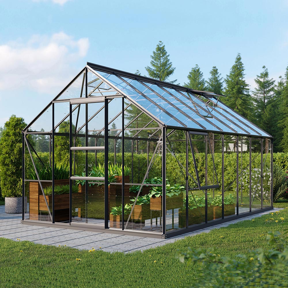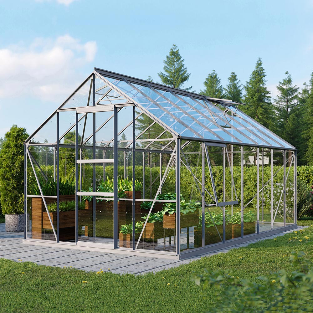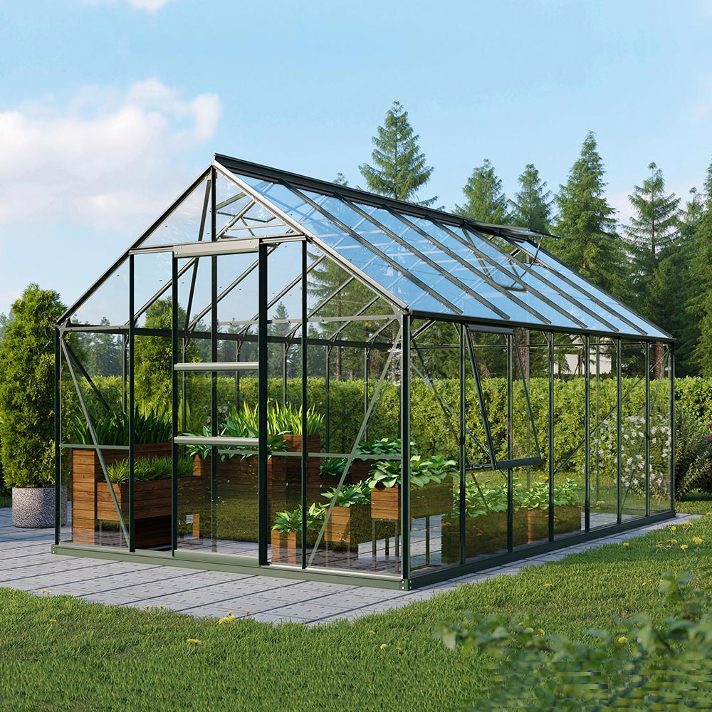 Vitavia Meridian 1 11500 är ett brett och praktiskt växthus för odlare som vill ha gott om arbetsyta. Med 11,5m² golvyta och en nockhöjd på 232cm finns det plats för odlingsbord på båda sidor, höga grödor i mitten och en tydlig gånglinje. Den breda utformningen gör intensiv odling året runt bekväm och effektiv.