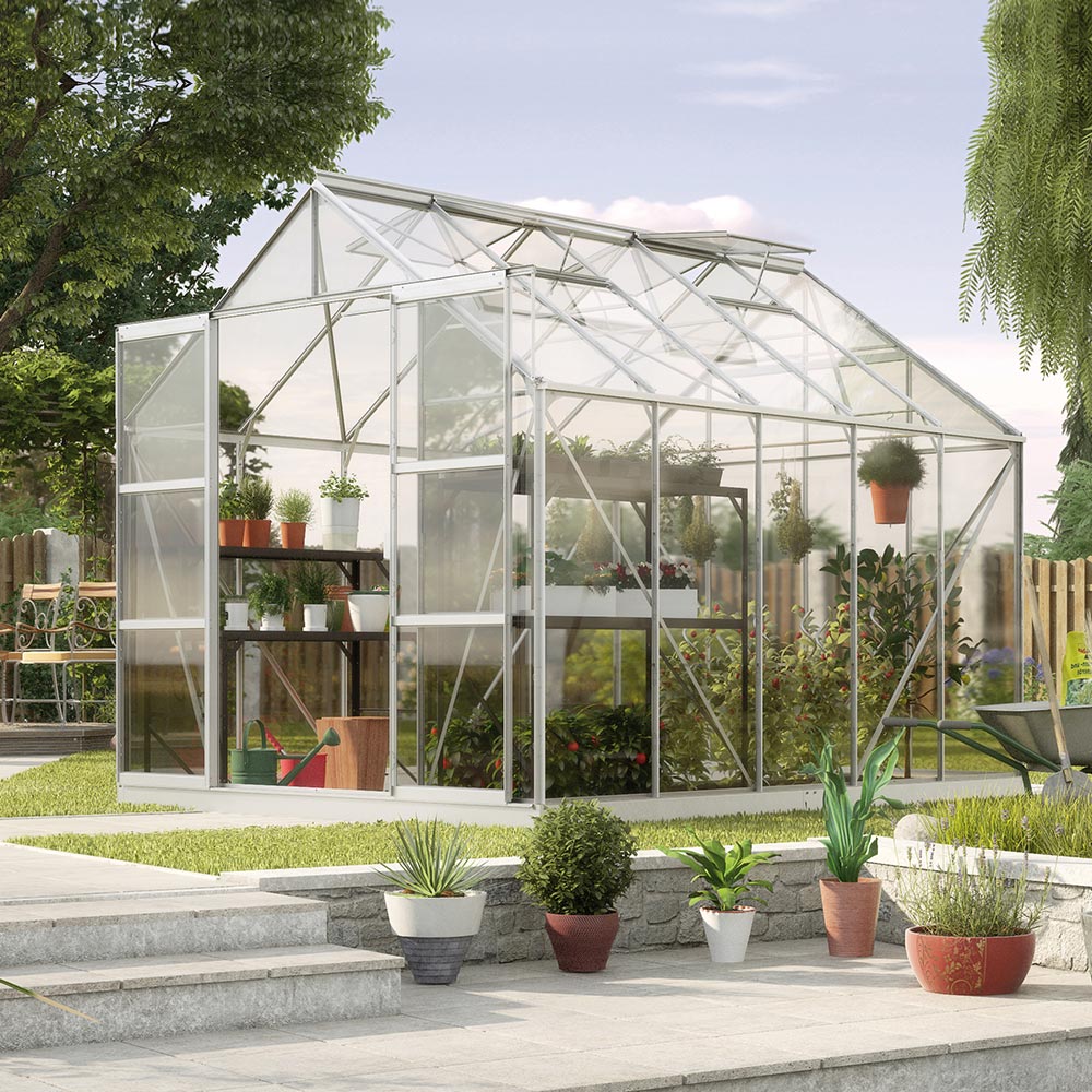 Uranus-serien erbjuder gott om utrymme och en bekväm arbetshöjd för odlare som gärna arbetar stående. Detta växthus ligger i mellanklassen hos Vitavia och kombinerar solida aluminiumprofiler med ett lätt och öppet intryck.